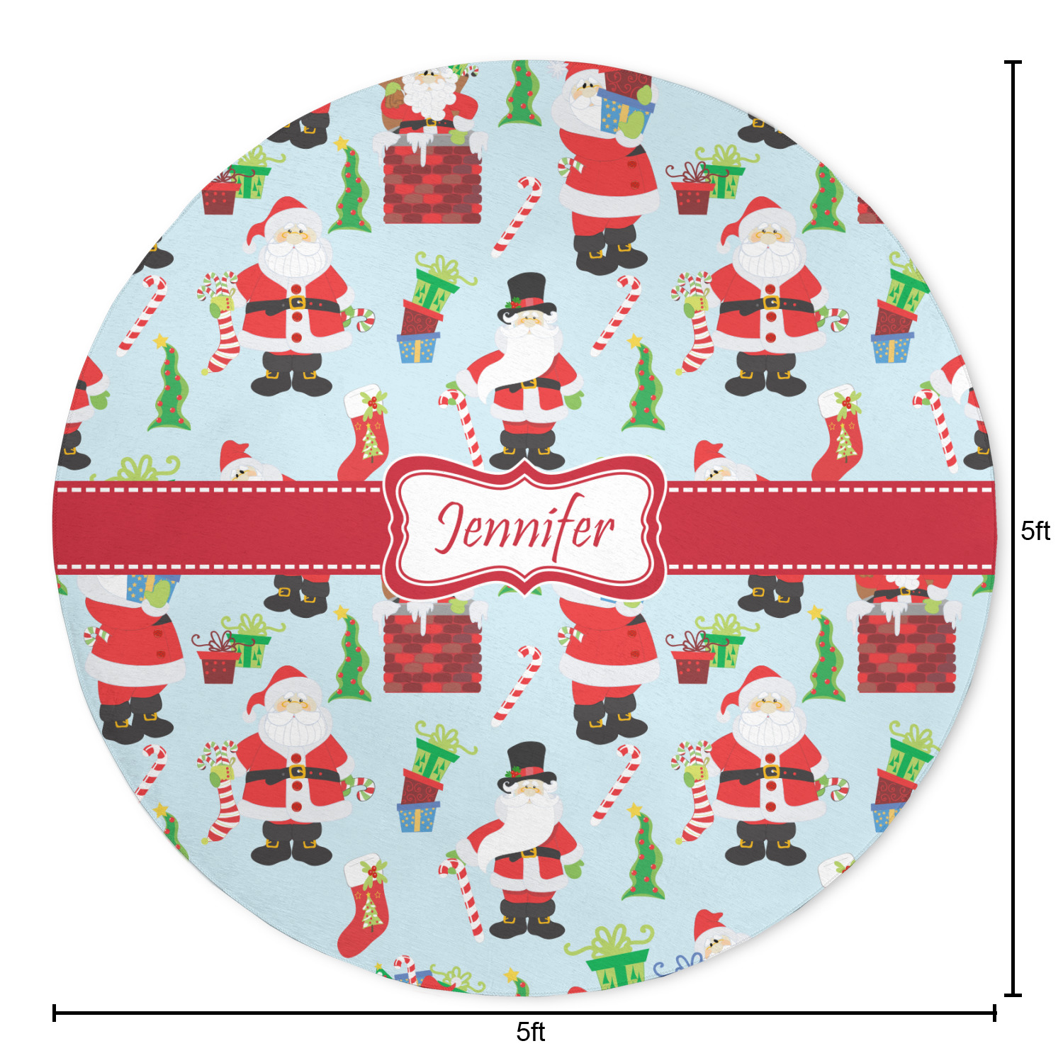 Believe in Santa Claus? Whether you do or not, this design is absolutely adorable with the background that has a cheerful Santa Claus all decked in his red and white, climbing down a chimney to leave presents upon presents and endless candy canes under your Christmas tree. The ribbon and label are red, and the label is the perfect place to put your name or text for personalization.