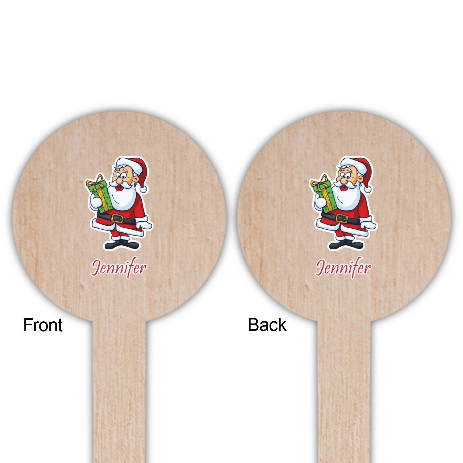 Believe in Santa Claus? Whether you do or not, this design is absolutely adorable with the background that has a cheerful Santa Claus all decked in his red and white, climbing down a chimney to leave presents upon presents and endless candy canes under your Christmas tree. The ribbon and label are red, and the label is the perfect place to put your name or text for personalization.