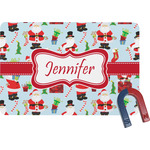 Believe in Santa Claus? Whether you do or not, this design is absolutely adorable with the background that has a cheerful Santa Claus all decked in his red and white, climbing down a chimney to leave presents upon presents and endless candy canes under your Christmas tree. The ribbon and label are red, and the label is the perfect place to put your name or text for personalization.