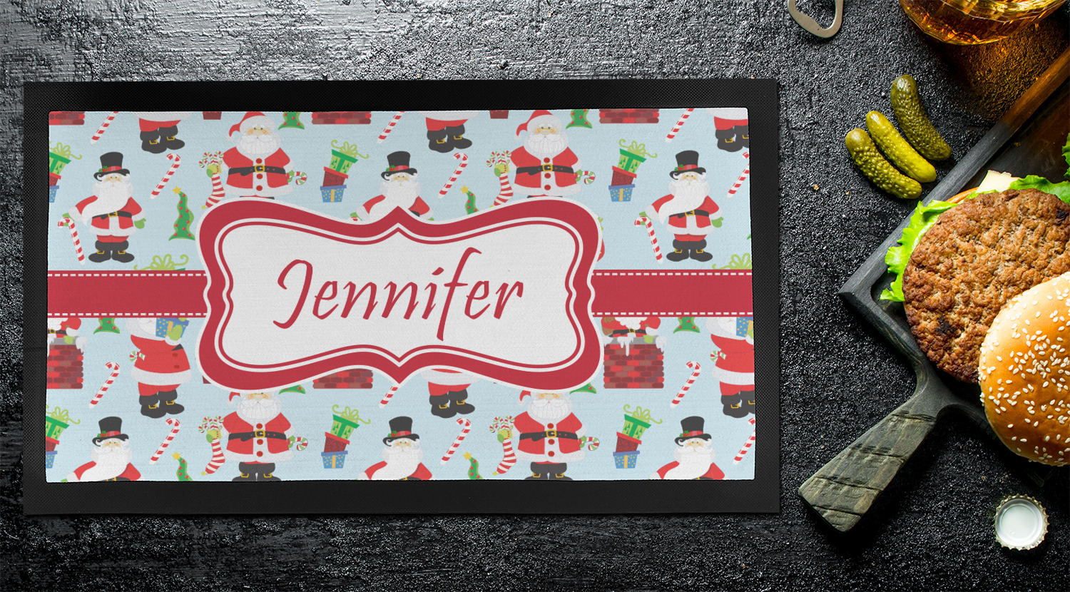 Believe in Santa Claus? Whether you do or not, this design is absolutely adorable with the background that has a cheerful Santa Claus all decked in his red and white, climbing down a chimney to leave presents upon presents and endless candy canes under your Christmas tree. The ribbon and label are red, and the label is the perfect place to put your name or text for personalization.
