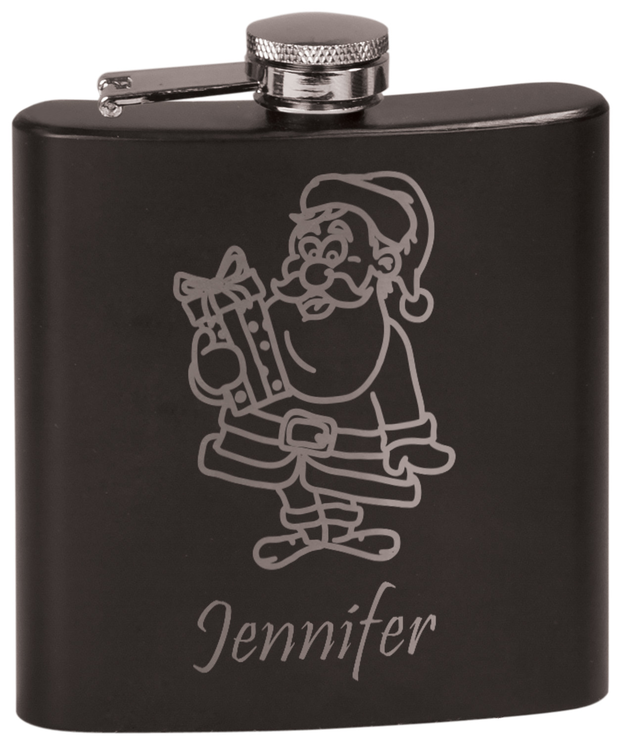 You'll always look classy when drinking when you use our black flask! These personalized flasks have a sleek, black look that will look lovely alongside your other bar-ware and accessories! After you've customized one for yourself, craft one for a friend or loved one!