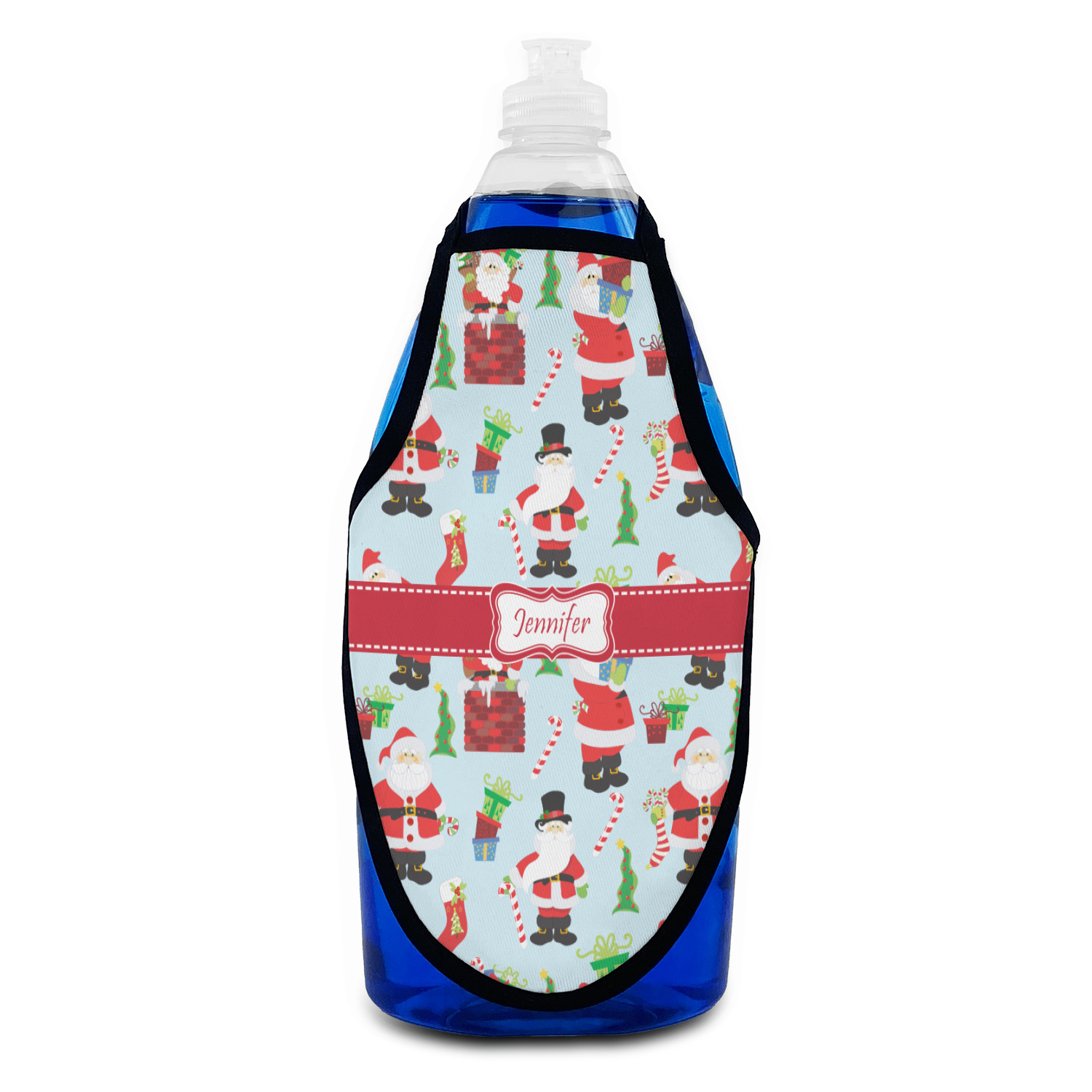 Believe in Santa Claus? Whether you do or not, this design is absolutely adorable with the background that has a cheerful Santa Claus all decked in his red and white, climbing down a chimney to leave presents upon presents and endless candy canes under your Christmas tree. The ribbon and label are red, and the label is the perfect place to put your name or text for personalization.