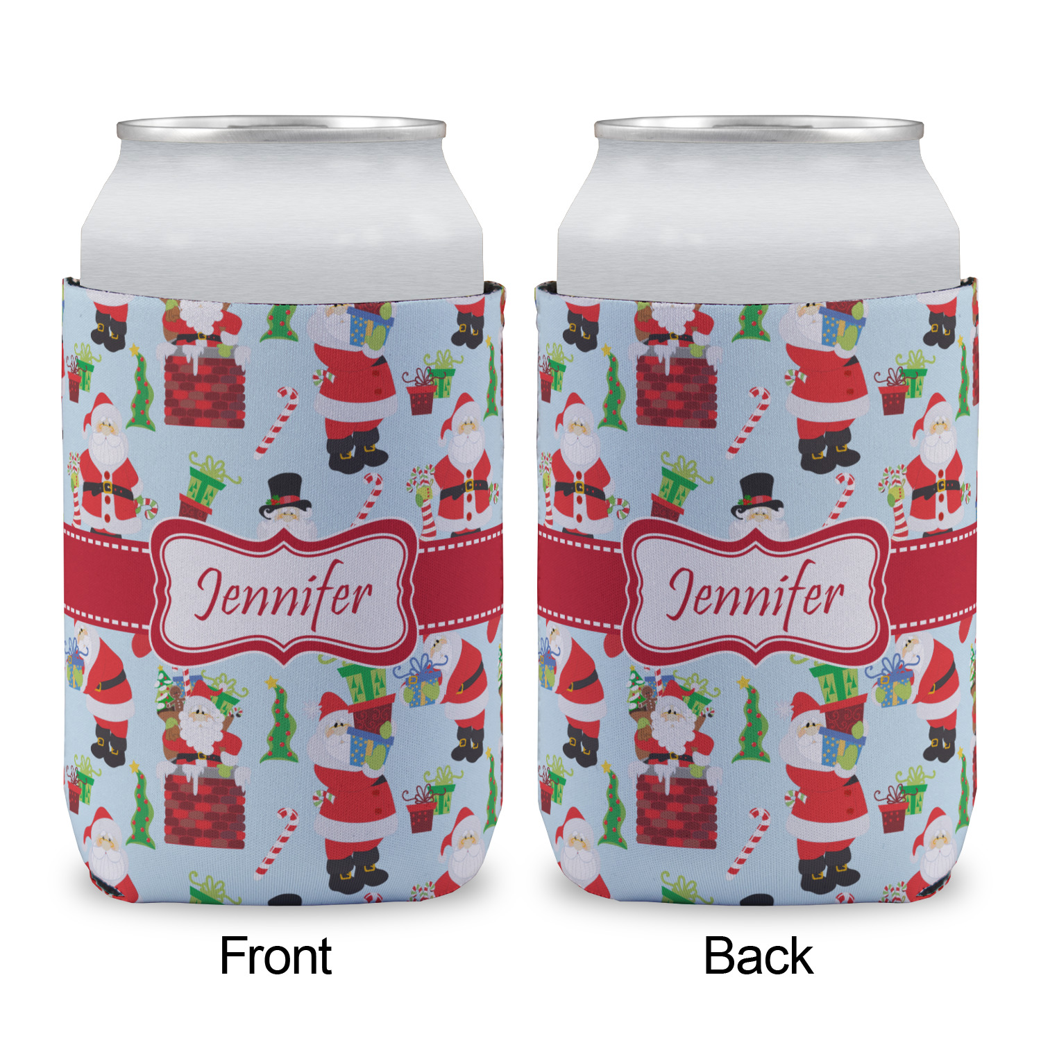 Believe in Santa Claus? Whether you do or not, this design is absolutely adorable with the background that has a cheerful Santa Claus all decked in his red and white, climbing down a chimney to leave presents upon presents and endless candy canes under your Christmas tree. The ribbon and label are red, and the label is the perfect place to put your name or text for personalization.