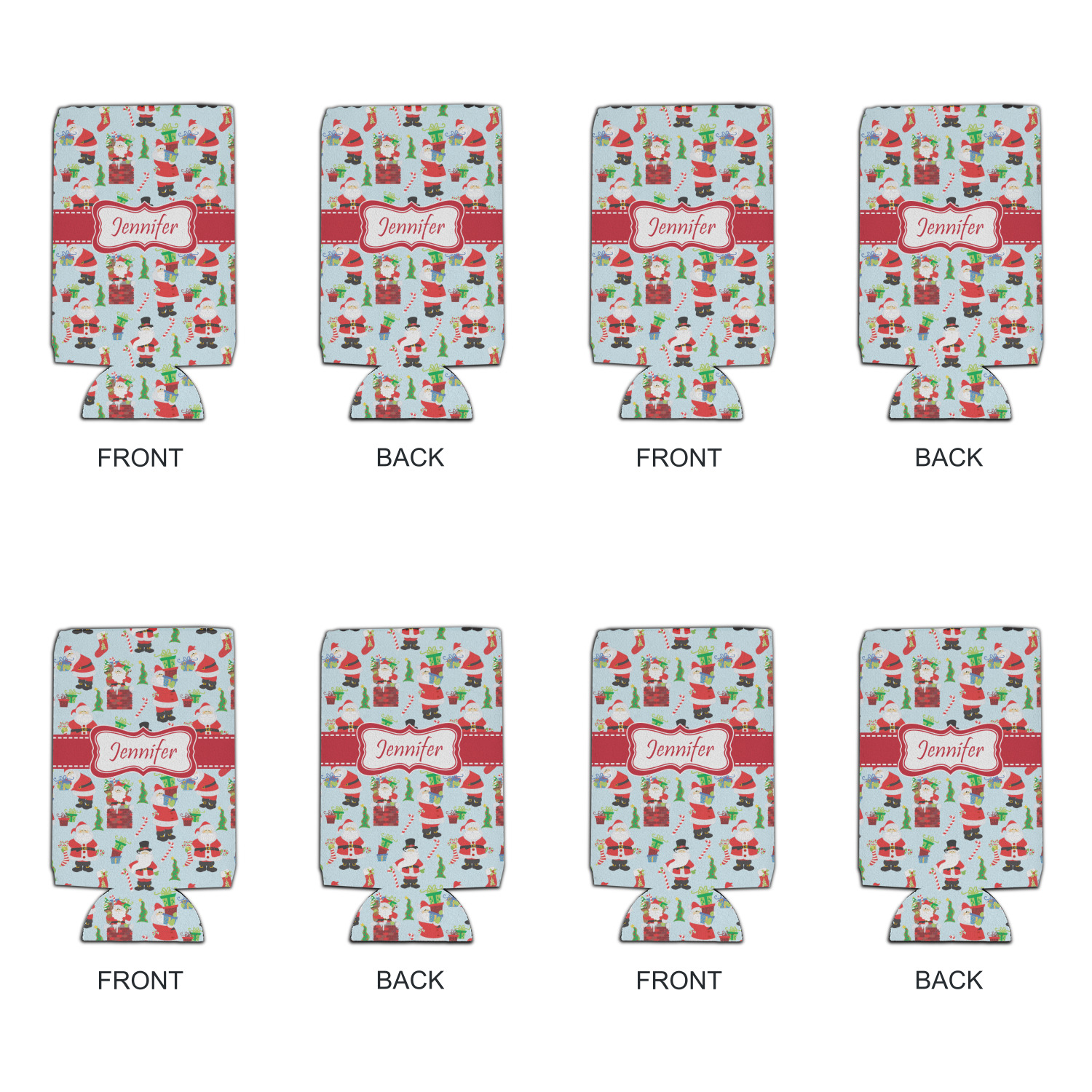 Believe in Santa Claus? Whether you do or not, this design is absolutely adorable with the background that has a cheerful Santa Claus all decked in his red and white, climbing down a chimney to leave presents upon presents and endless candy canes under your Christmas tree. The ribbon and label are red, and the label is the perfect place to put your name or text for personalization.