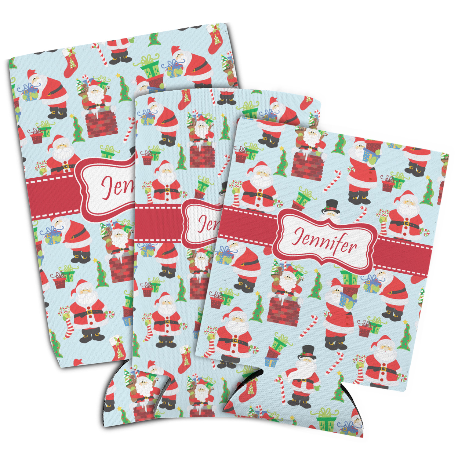 Believe in Santa Claus? Whether you do or not, this design is absolutely adorable with the background that has a cheerful Santa Claus all decked in his red and white, climbing down a chimney to leave presents upon presents and endless candy canes under your Christmas tree. The ribbon and label are red, and the label is the perfect place to put your name or text for personalization.