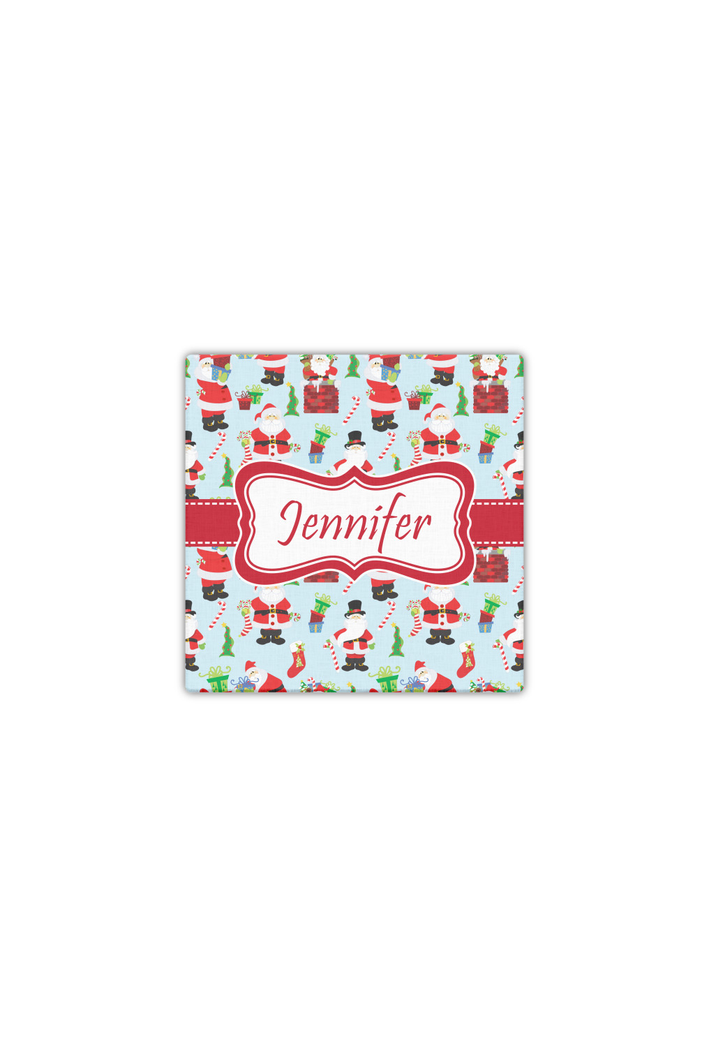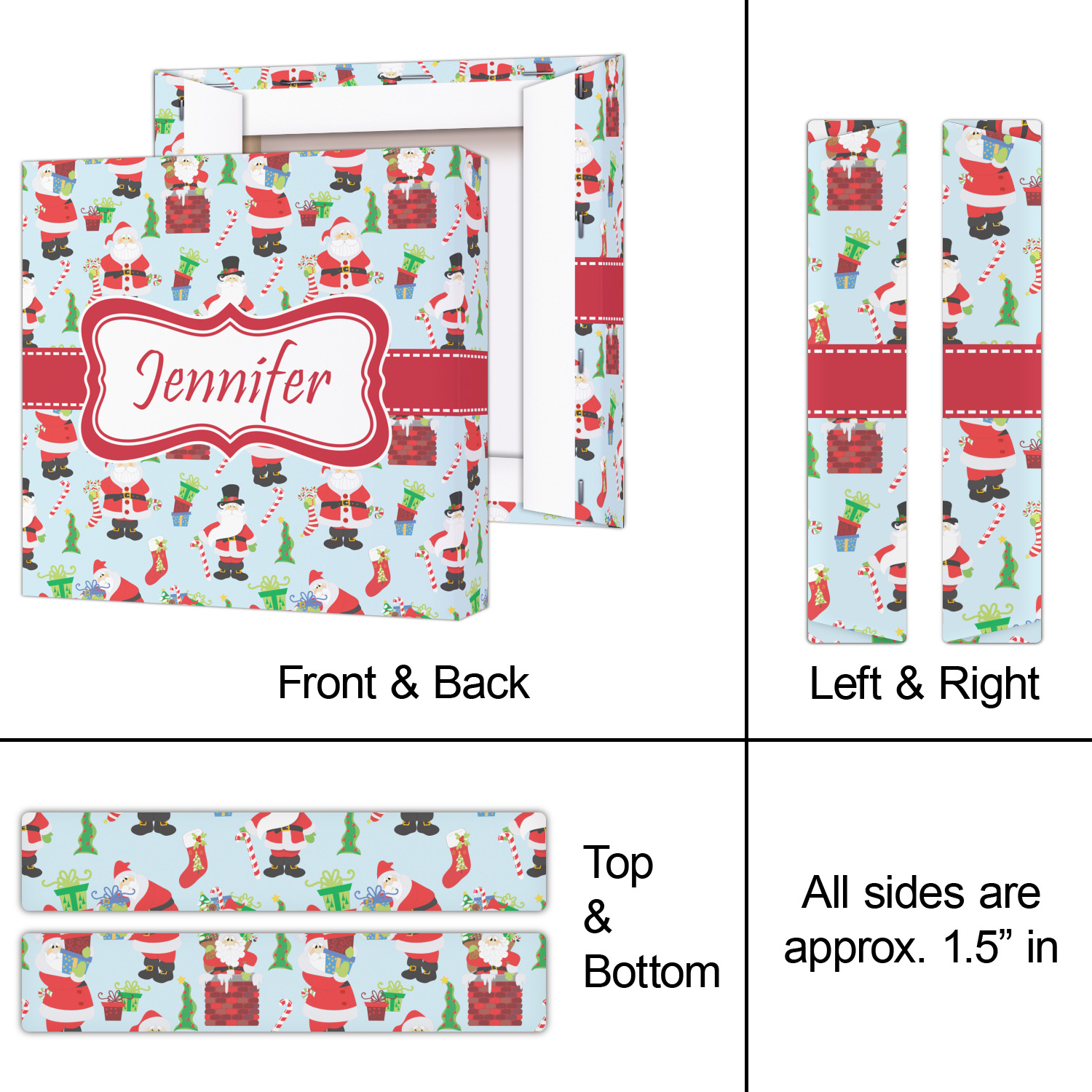Believe in Santa Claus? Whether you do or not, this design is absolutely adorable with the background that has a cheerful Santa Claus all decked in his red and white, climbing down a chimney to leave presents upon presents and endless candy canes under your Christmas tree. The ribbon and label are red, and the label is the perfect place to put your name or text for personalization.