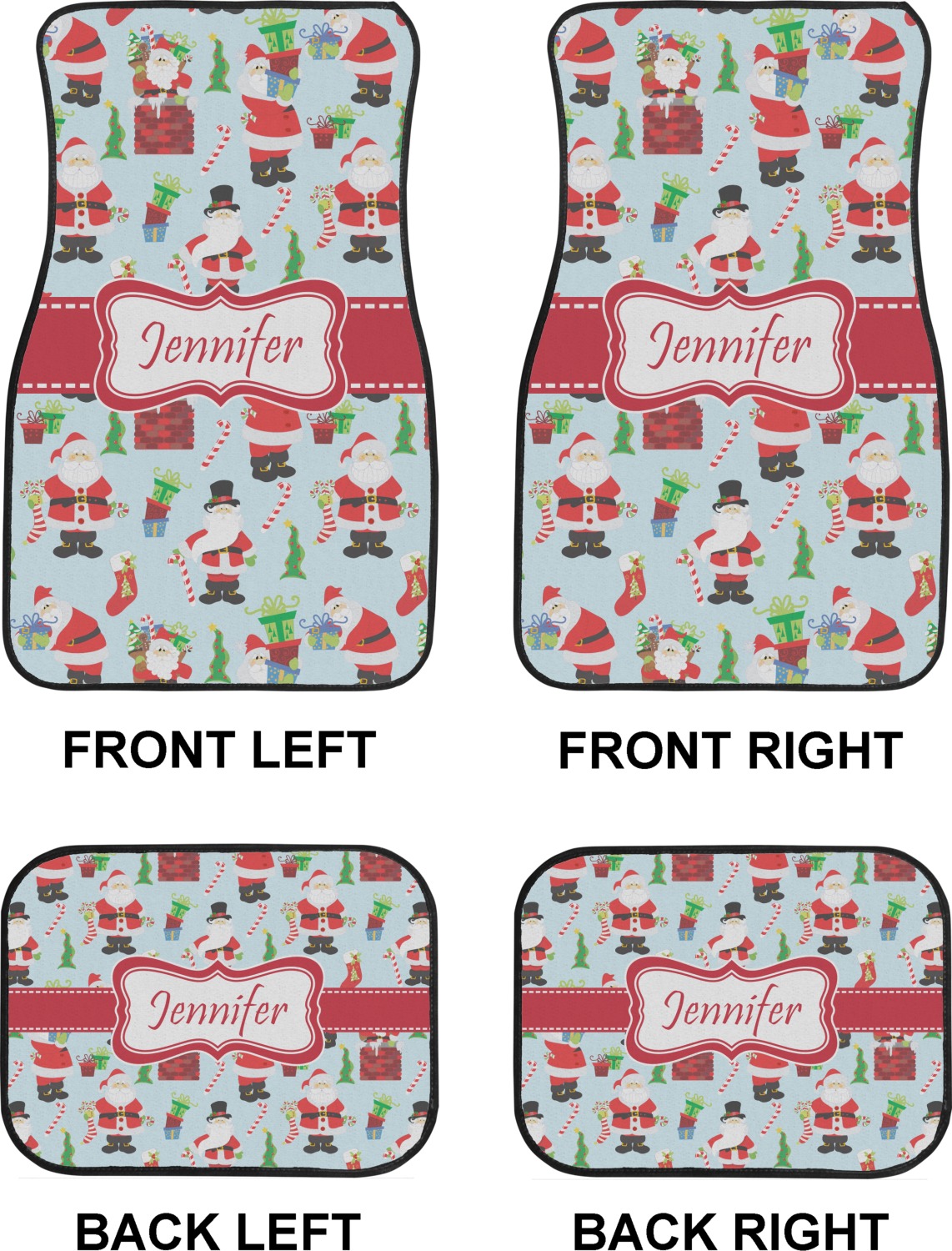 We craft our auto floor mats mats from polyester, apply a black finish to the edges, and lined at the bottom to prevent slippage. These mats protect your floors from grass, mud, and any accidental spills. We display your personalized design on the front face of each mat. The sizes of these car floor liners are standardized to provide a versatile fit for all vehicles. The front rows car mats measure at 17 by 26.5 inches, while the back rows measure at 17 by 13 inches. We sell three packages of car floor mats. You can purchase a pair of front row car mats, a pair of back row car mats, or a set of front row and back row car mats. To make an informed purchase, we recommend measuring the surface area of your car floors.