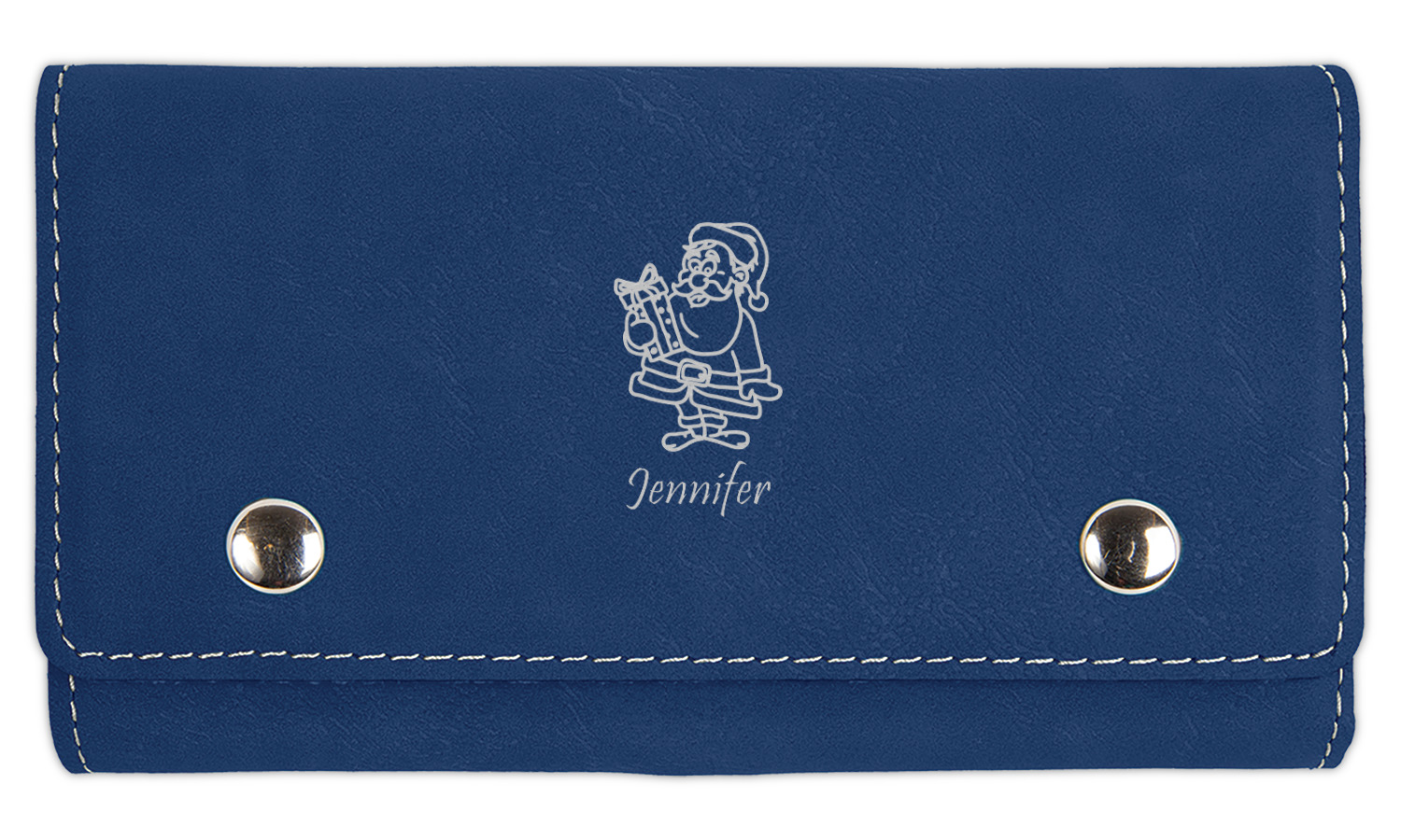 Believe in Santa Claus? Whether you do or not, this design is absolutely adorable with the background that has a cheerful Santa Claus all decked in his red and white, climbing down a chimney to leave presents upon presents and endless candy canes under your Christmas tree. The ribbon and label are red, and the label is the perfect place to put your name or text for personalization.