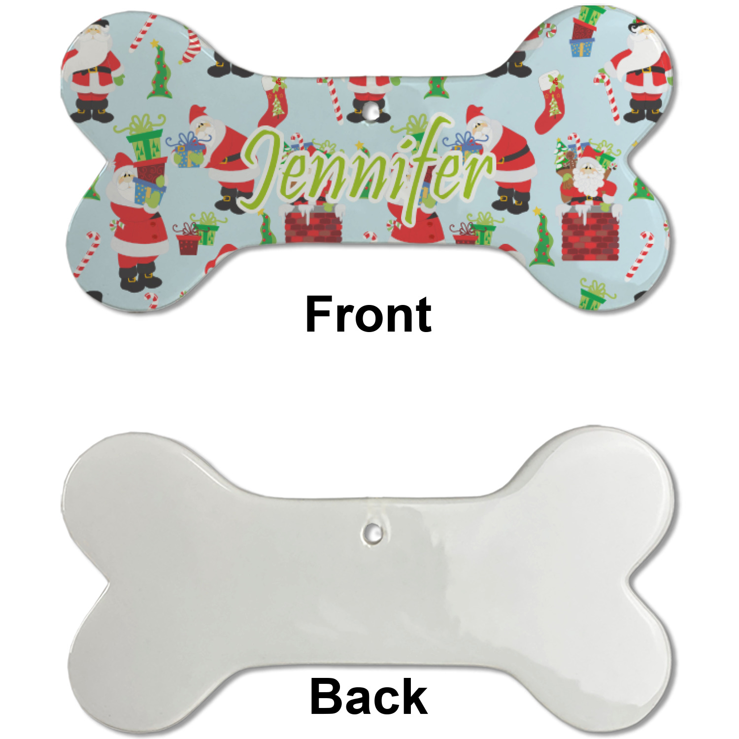 Our dog Christmas ornaments are a ceramic material with a bone-shaped structure hung horizontally. We offer two printing styles to personalize your furry friend's ornament! Choose a one-sided printing, perfect for wall decor, memorial accessory, or doghouse nameplate! Create a double-sided ornament perfect for adorning the Christmas tree. Each dog bone ornament is approximately 4.75" x 2.25" and is printed here in the USA.