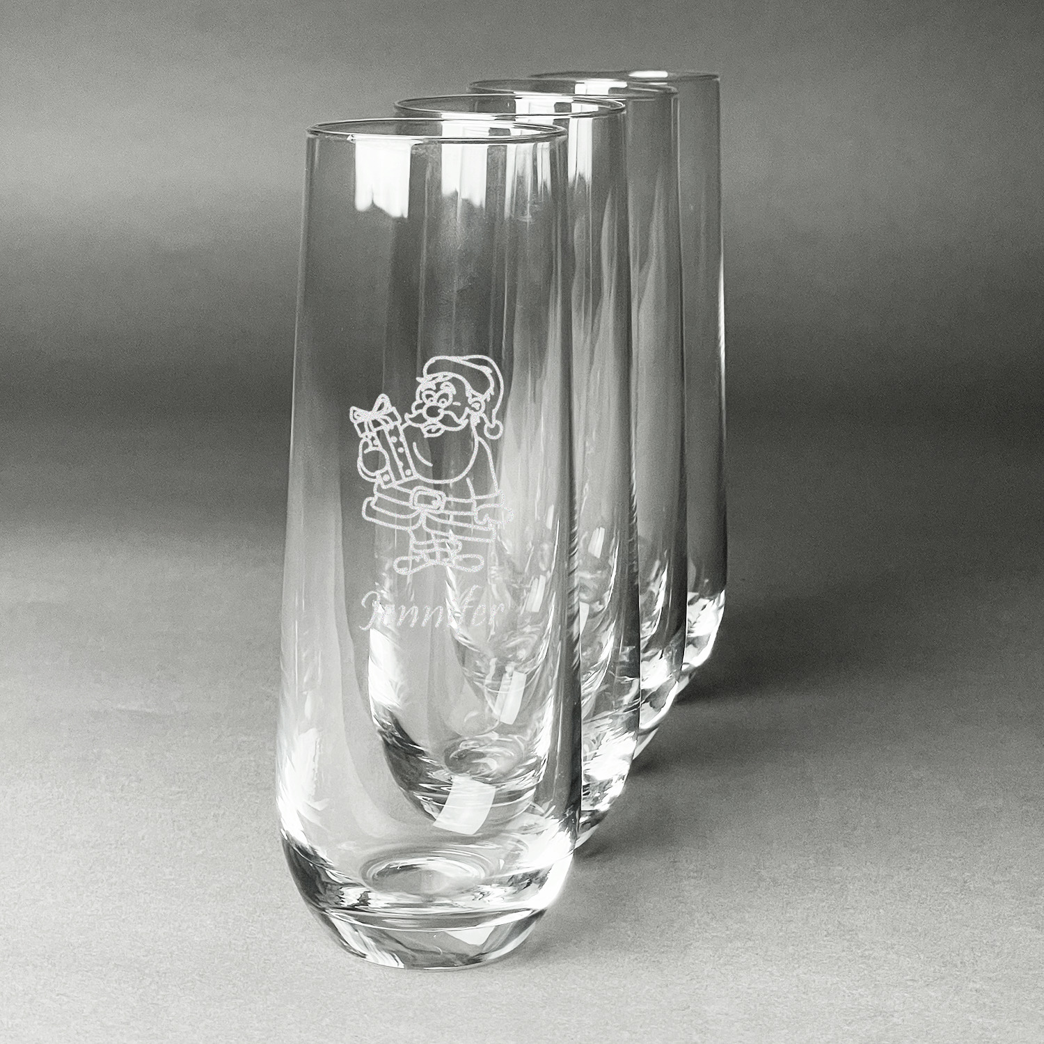 Design your custom stemless champagne flutes and we will then laser engrave your unique design on them for you. Whether they are a special gift for a bride and groom, for your New Years Eve party, or a bachelorette party you are sure to be able to add a custom personalized touch to make them perfect for the occasion.