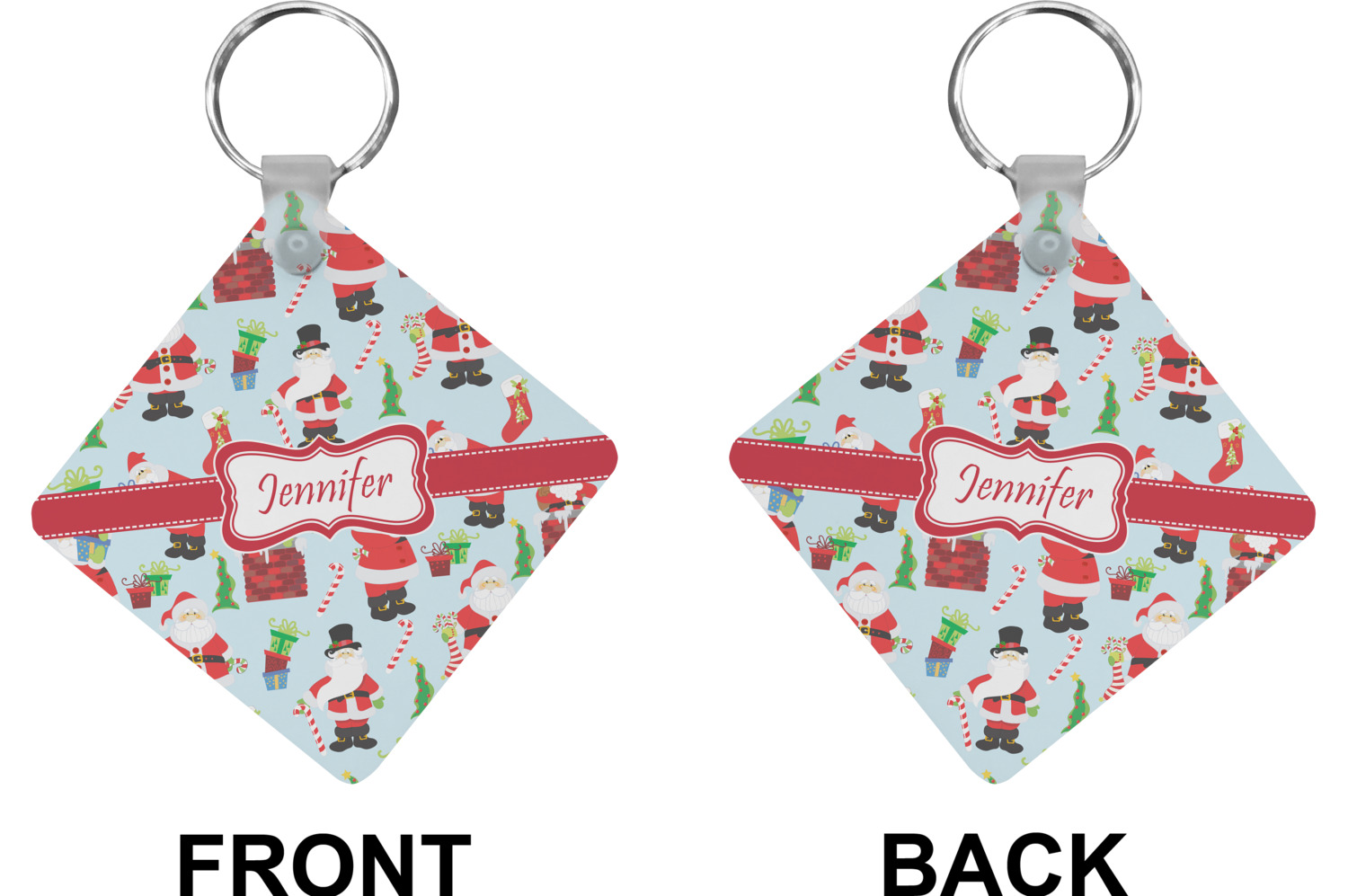 Our personalized keychains attach to the included metal, split key ring with a plastic, removable snap. Since a metal ring is included with your purchase, you have the liberty to keep your keys together on the ring, with or without your unique keychain. We offer this keychain in three different shapes: circle, heart, or diamond. We print your personalized design(s) on both sides of the key chain, and the surface has a glossy, reflective finish that only emphasizes your design. Each keychain is approximately 2.25 by 2.25 inches.