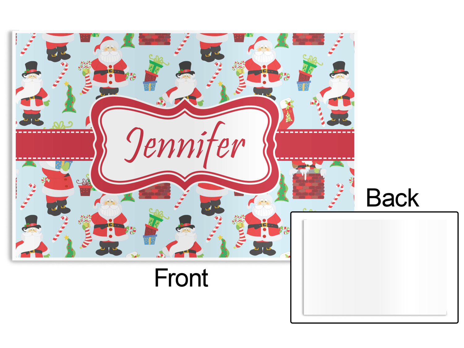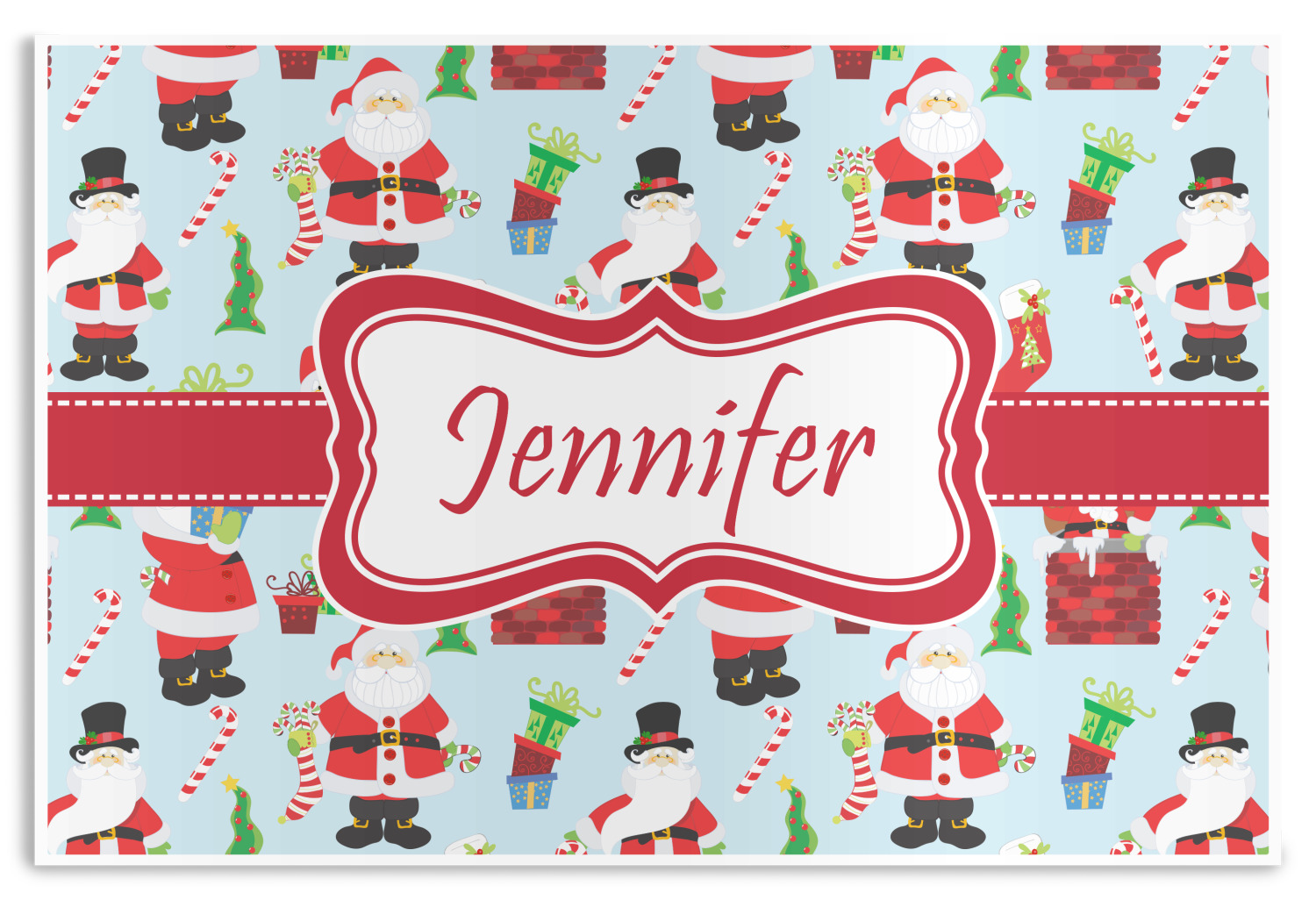 Believe in Santa Claus? Whether you do or not, this design is absolutely adorable with the background that has a cheerful Santa Claus all decked in his red and white, climbing down a chimney to leave presents upon presents and endless candy canes under your Christmas tree. The ribbon and label are red, and the label is the perfect place to put your name or text for personalization.