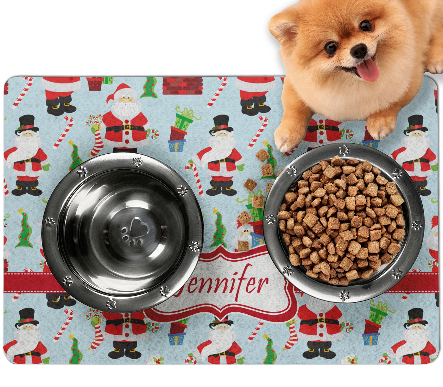 This dog bowl mat, fabricated from polyester, proudly displays your customized design on its top, while its bottom includes a non-slip rubber. This feature allows it to remain firmly in place, even when your dog spills his/her water. With 3 sizes available (18" x 12", 24" x 18", 30" x 24"), the pet food mat has ample space for both a food and water bowl for any sized dogs. Though specified for dogs' use, these mats are also a splendid option for cats.