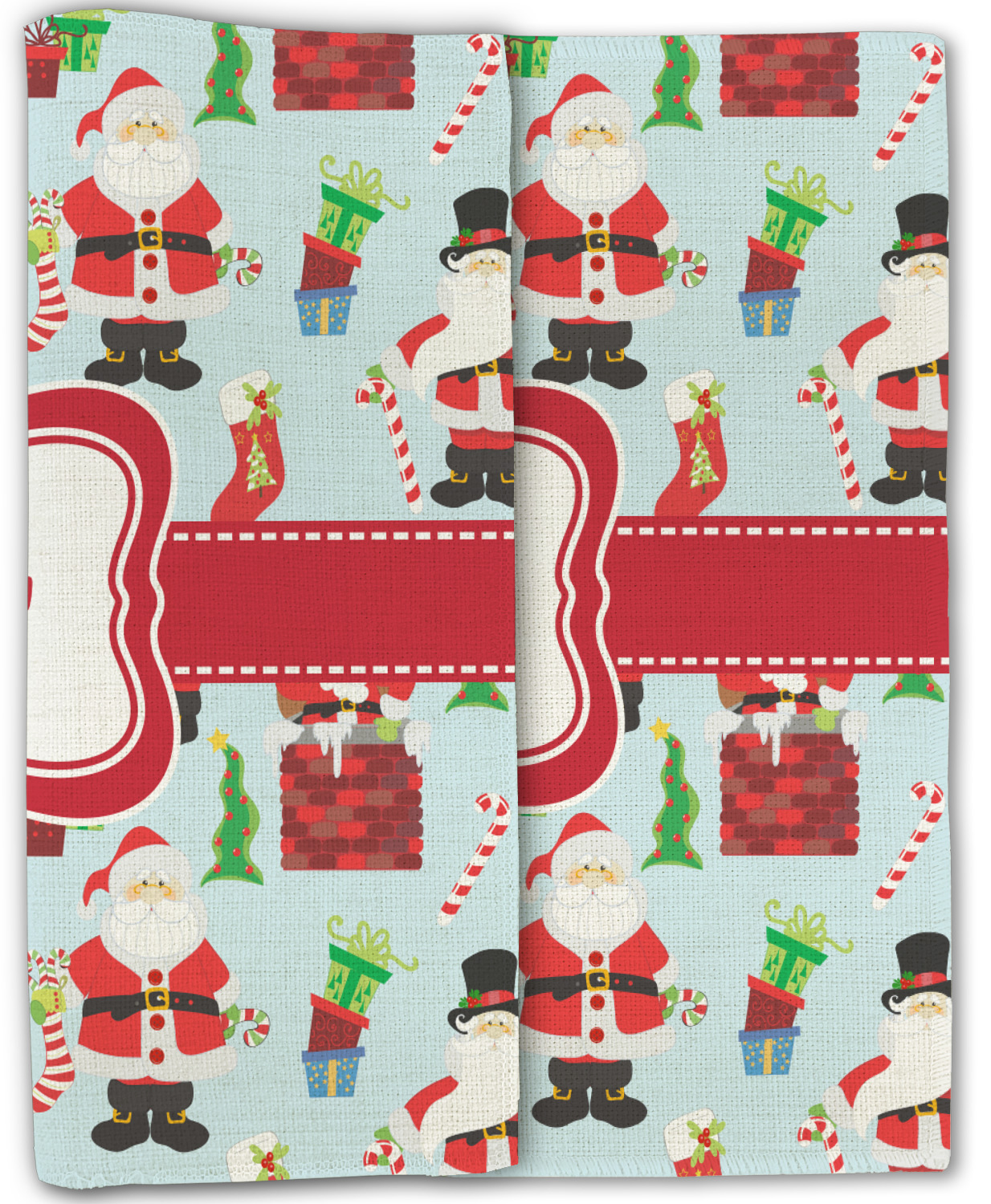 Believe in Santa Claus? Whether you do or not, this design is absolutely adorable with the background that has a cheerful Santa Claus all decked in his red and white, climbing down a chimney to leave presents upon presents and endless candy canes under your Christmas tree. The ribbon and label are red, and the label is the perfect place to put your name or text for personalization.
