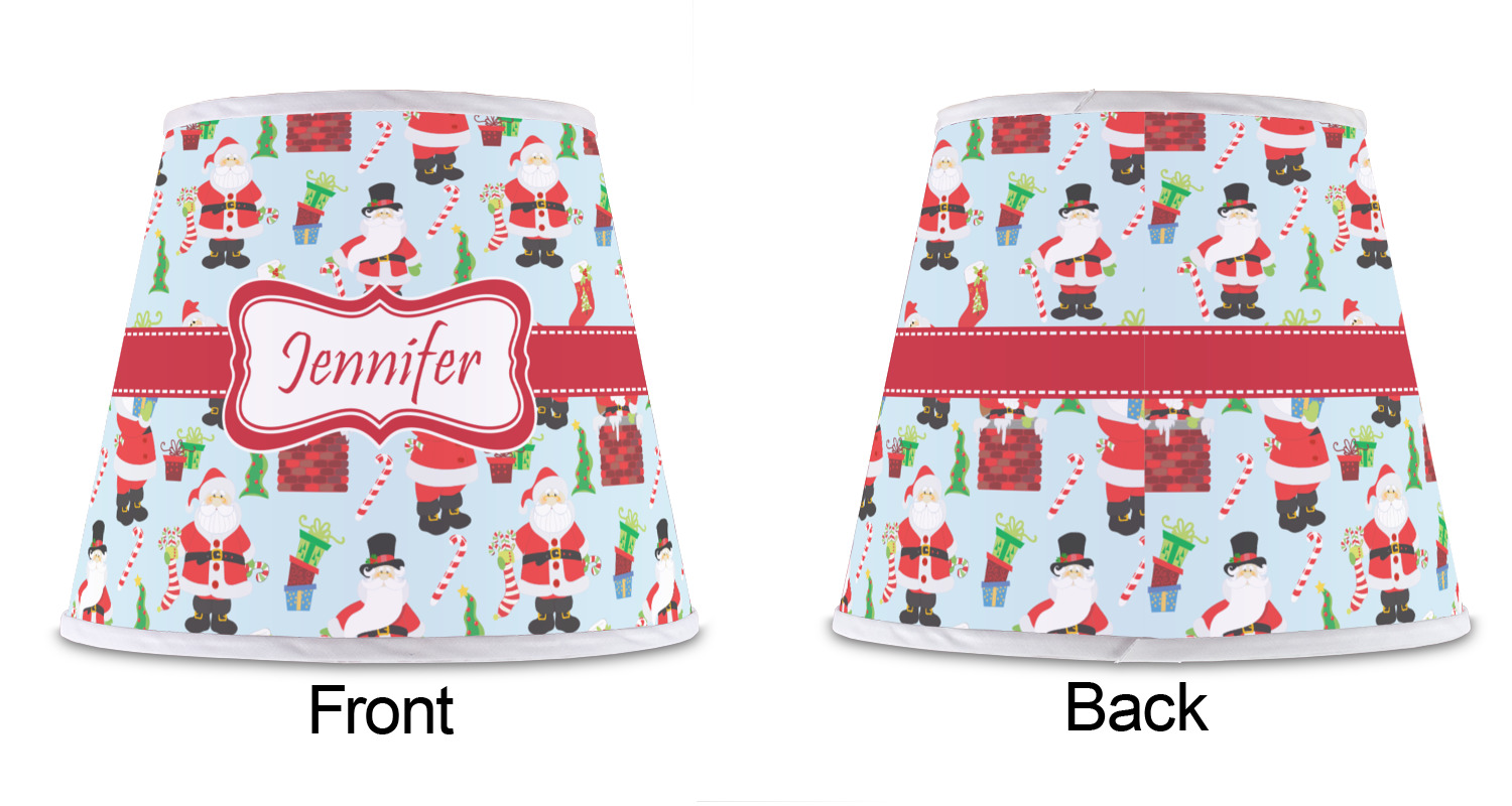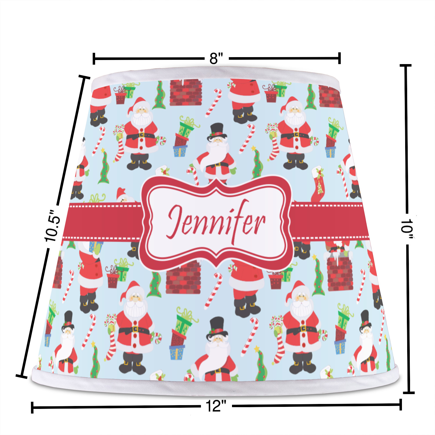 The base of this lampshade is 12 inches in diameter, and the top spans 8 inches in diameter. The total height of the lampshade is 10 inches. The angled nature of this custom lampshade concentrates the light, making it ideal for smaller spaces. This lampshade is made of matte, polyfilm, and displays your customization in its middle. The top and bottom of this colorful lamp shade are lined with a white fabric ribbon (which can be replaced with black inside the design studio) which frames your design and creates a sophisticated finish. As an UNO fitter lampshade, this unique lamp shade will fit a variety of bases.