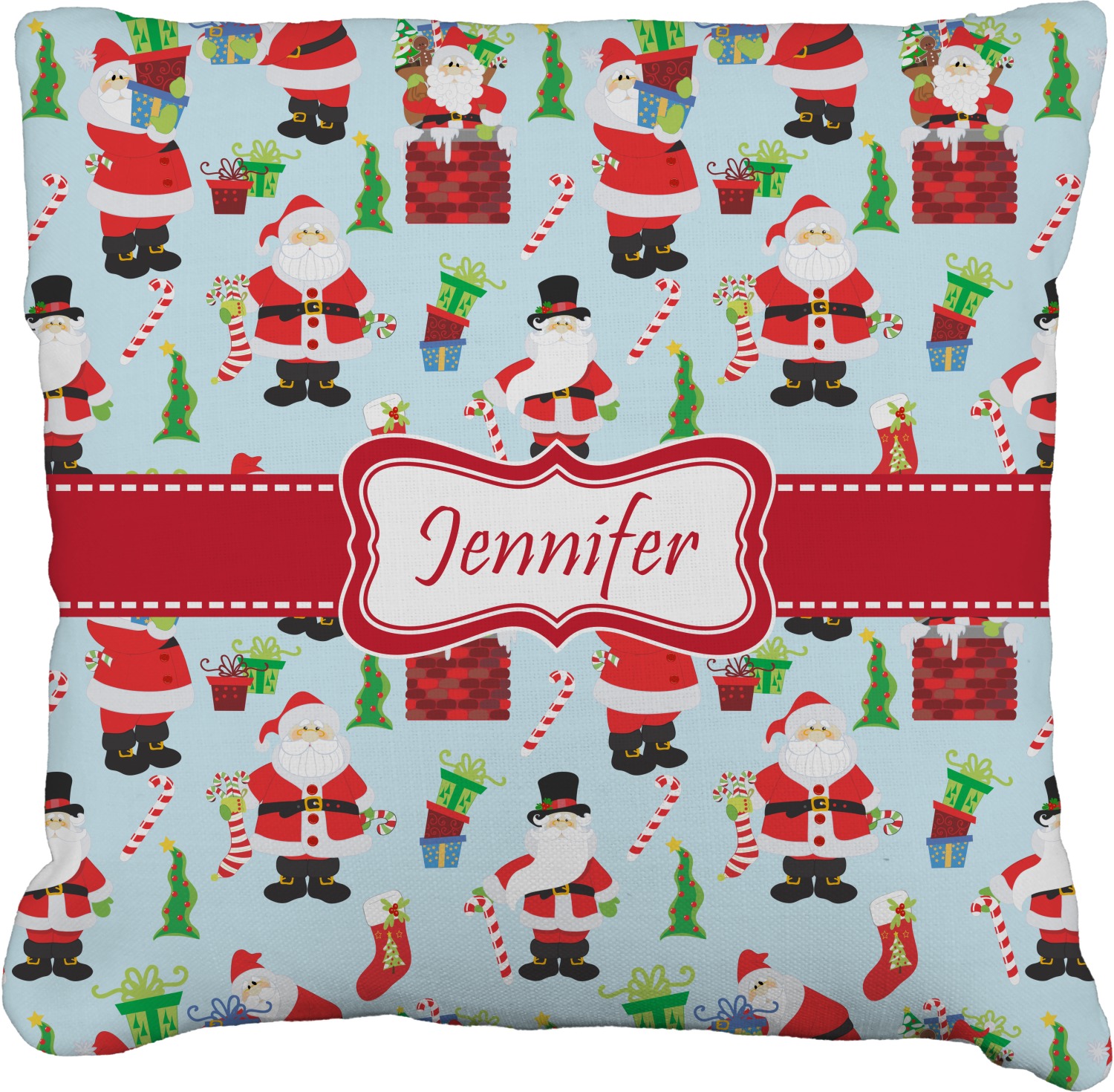 Believe in Santa Claus? Whether you do or not, this design is absolutely adorable with the background that has a cheerful Santa Claus all decked in his red and white, climbing down a chimney to leave presents upon presents and endless candy canes under your Christmas tree. The ribbon and label are red, and the label is the perfect place to put your name or text for personalization.