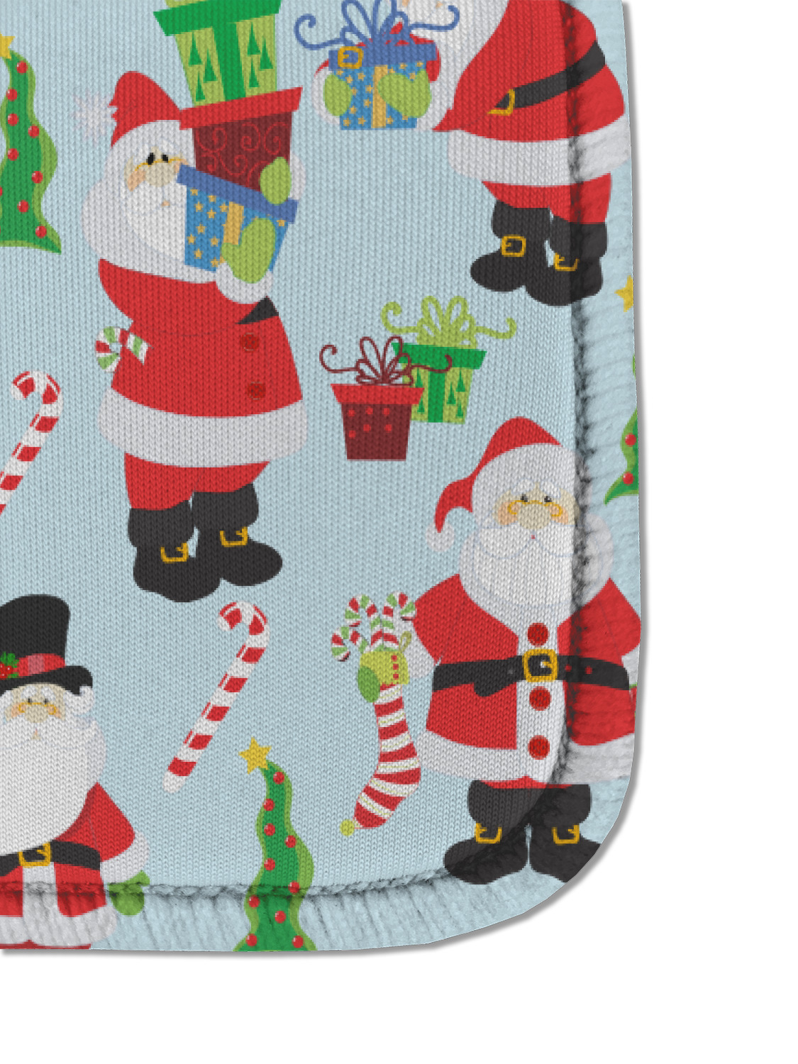 Believe in Santa Claus? Whether you do or not, this design is absolutely adorable with the background that has a cheerful Santa Claus all decked in his red and white, climbing down a chimney to leave presents upon presents and endless candy canes under your Christmas tree. The ribbon and label are red, and the label is the perfect place to put your name or text for personalization.