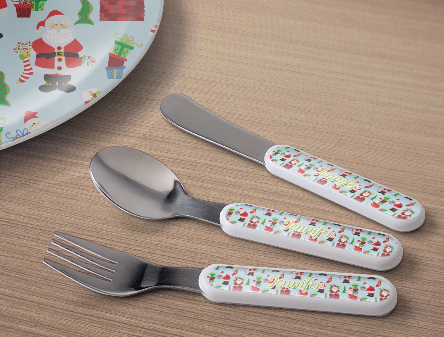 This set of kids' silverware includes a 5.5 inch spoon, fork, and knife, catered to your little one's needs. The prongs of this fork are flat and dull, while our spoon is small enough for tiny mouths, and the dullness of the knife itself resembles a butter knife, at most. These kids' utensils are made of stainless steel, while the handles are crafted from a durable plastic that will withstand the energy and use of your young one. We print your customization across the handles, making the cutlery set unique to your child only.