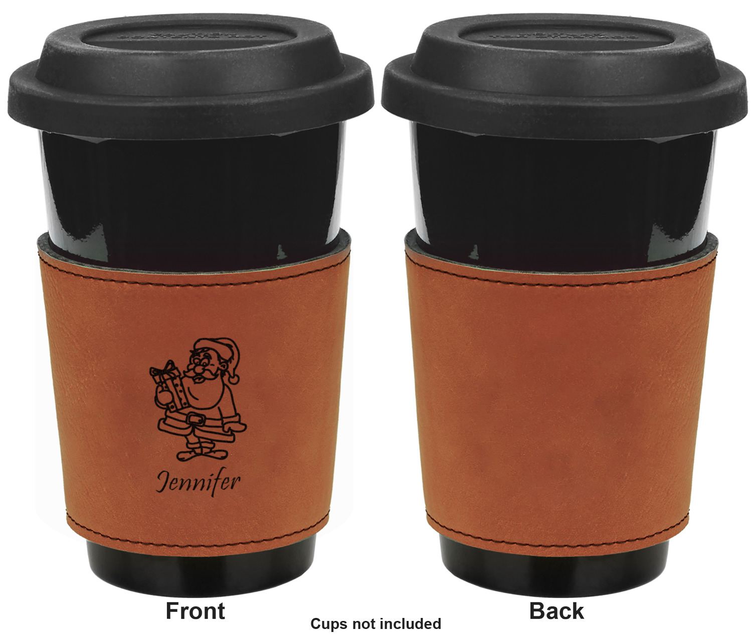 This cup sleeve is made from a suave, cognac-brown leatherette and finished with an intricate, black stitch. The interior of this can sleeve is fabricated from a thin foam material to help insulate your mug's contents. The sleeve is specifically made to suit tapered glasses or mugs, so the top's diameter is 3.5 inches, while the bottom's diameter is 2.75 inches. Your customized design will be laser engraved into the leatherette, leaving behind crisp, black imprint. With these products, we provide you with the option of engraving the front and back, or the front only.