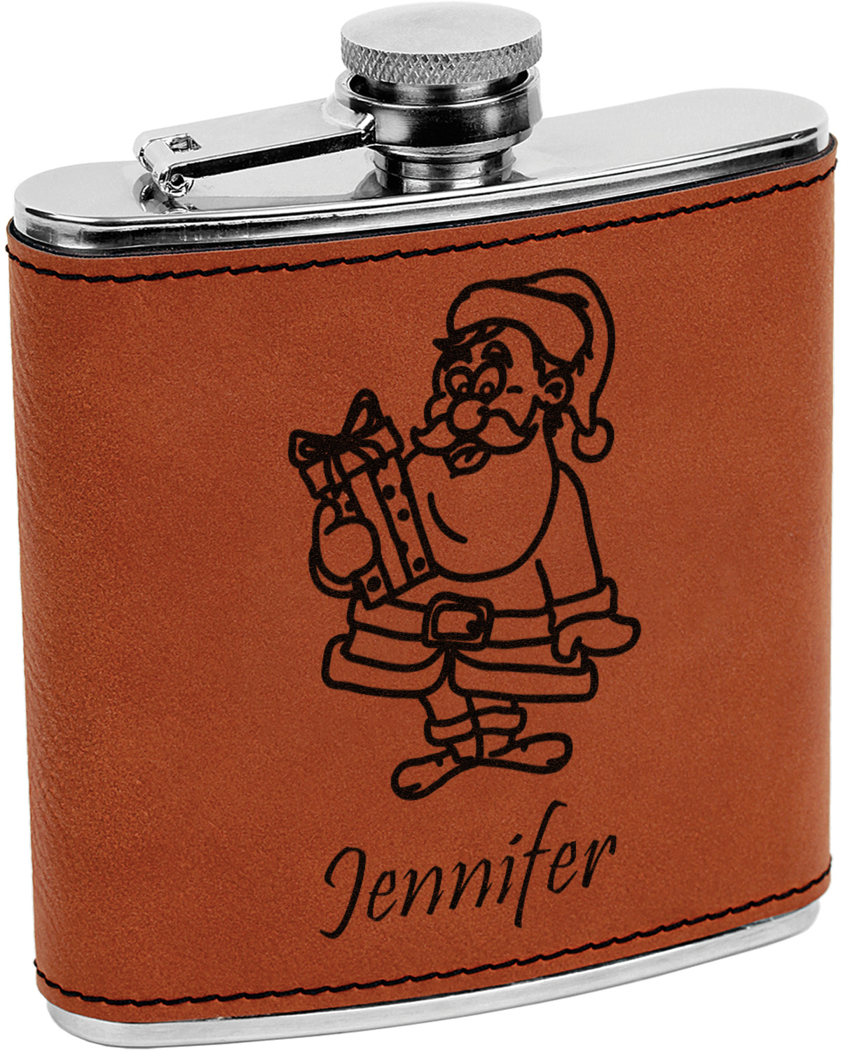 Sip your beverage in a classy fashion with one of our stainless steel flasks! These flasks are sold with an engraved, leatherette wrap that you customize! The refined look of these hip flasks make them the perfect gift for a loved one!