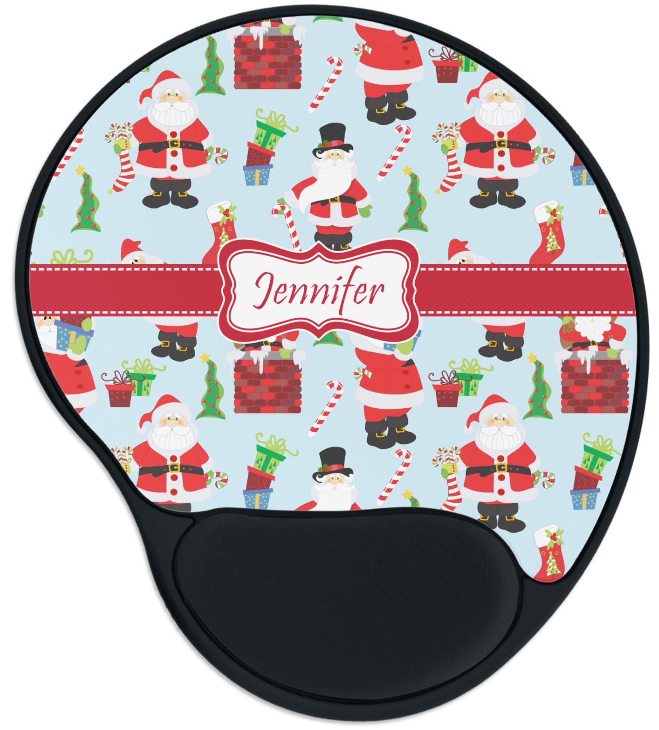 The top of these personalized mouse pads are made from a polyester, while the underside is plastic. The back of these mouse mats include rubber feet to prevent any slippage while in use. A padded wrist support, made from plush memory foam, occupies the bottom section of these computer mouse pads. Your customized design is printed onto the face of this mat, with the remaining sides and support piece colored in black. The mat itself is rounded and measures at 10.25" x 9.13".