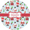 Believe in Santa Claus? Whether you do or not, this design is absolutely adorable with the background that has a cheerful Santa Claus all decked in his red and white, climbing down a chimney to leave presents upon presents and endless candy canes under your Christmas tree. The ribbon and label are red, and the label is the perfect place to put your name or text for personalization.
