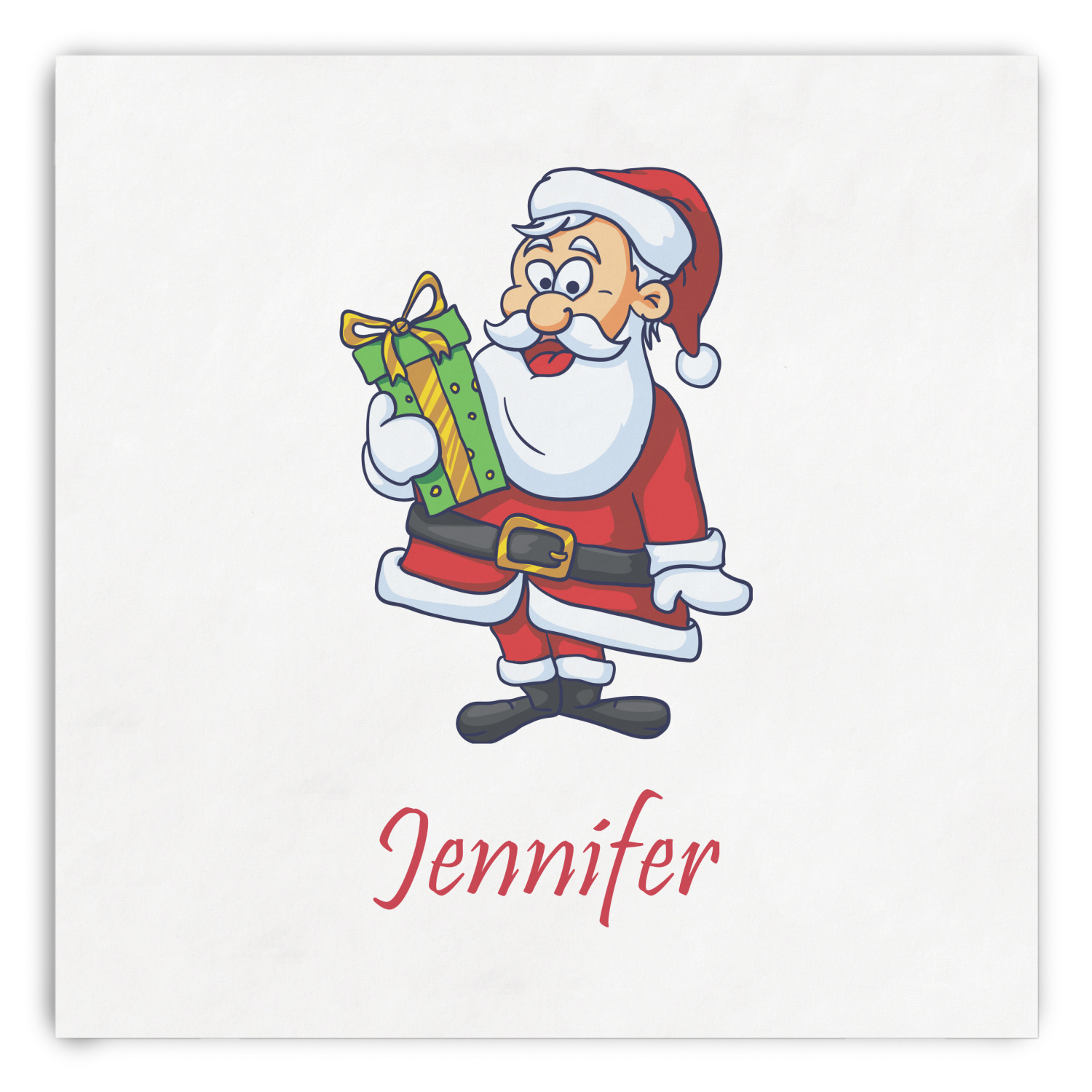Believe in Santa Claus? Whether you do or not, this design is absolutely adorable with the background that has a cheerful Santa Claus all decked in his red and white, climbing down a chimney to leave presents upon presents and endless candy canes under your Christmas tree. The ribbon and label are red, and the label is the perfect place to put your name or text for personalization.