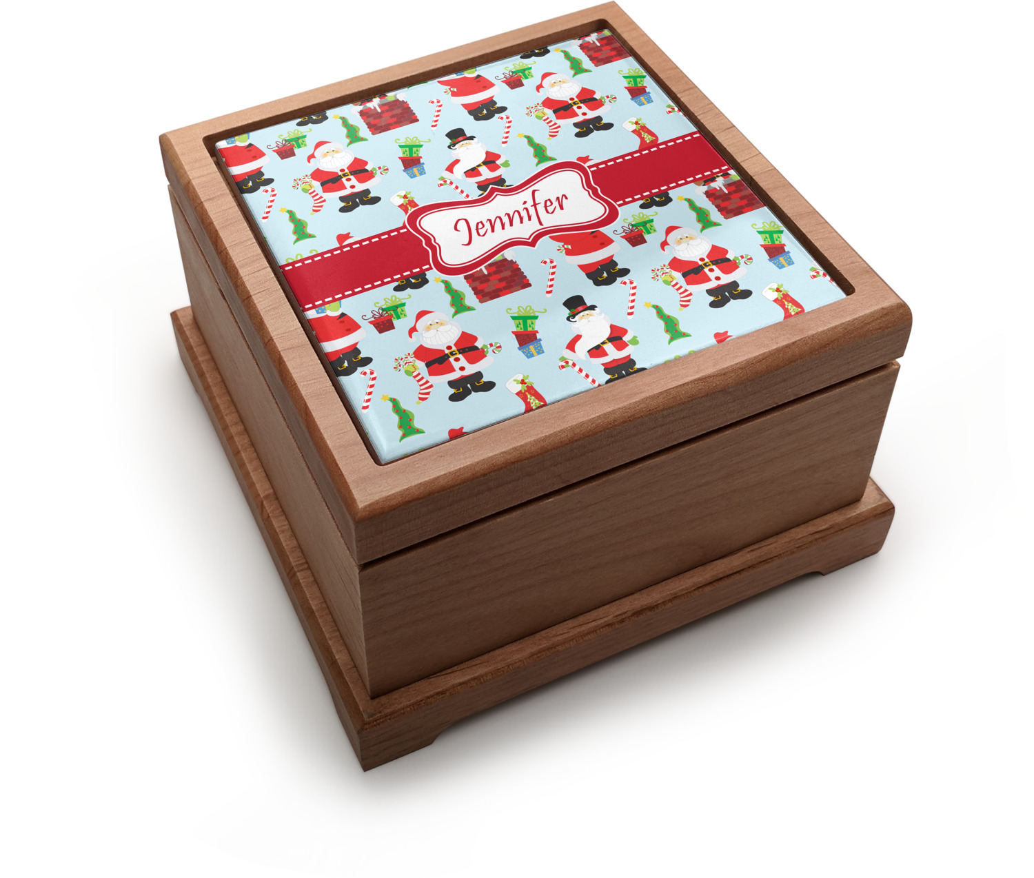 Believe in Santa Claus? Whether you do or not, this design is absolutely adorable with the background that has a cheerful Santa Claus all decked in his red and white, climbing down a chimney to leave presents upon presents and endless candy canes under your Christmas tree. The ribbon and label are red, and the label is the perfect place to put your name or text for personalization.