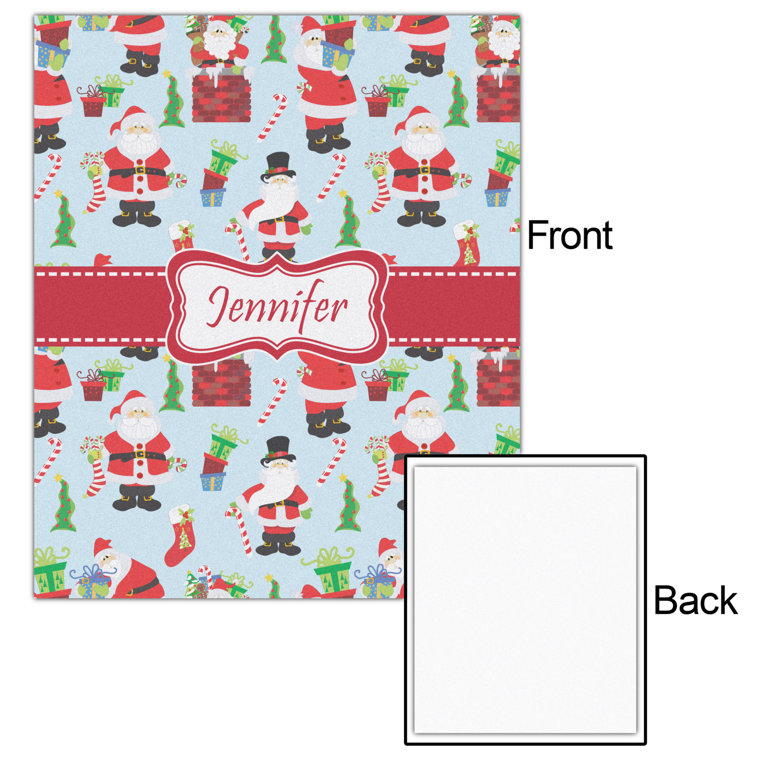 Believe in Santa Claus? Whether you do or not, this design is absolutely adorable with the background that has a cheerful Santa Claus all decked in his red and white, climbing down a chimney to leave presents upon presents and endless candy canes under your Christmas tree. The ribbon and label are red, and the label is the perfect place to put your name or text for personalization.