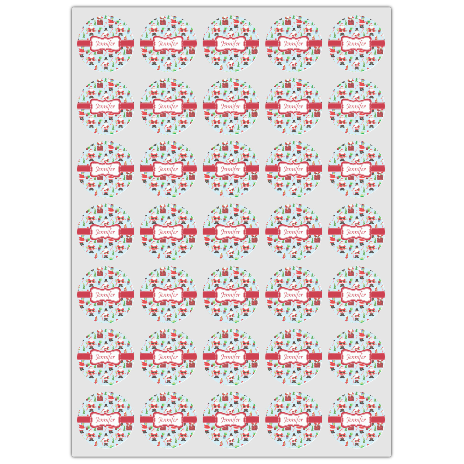 Believe in Santa Claus? Whether you do or not, this design is absolutely adorable with the background that has a cheerful Santa Claus all decked in his red and white, climbing down a chimney to leave presents upon presents and endless candy canes under your Christmas tree. The ribbon and label are red, and the label is the perfect place to put your name or text for personalization.