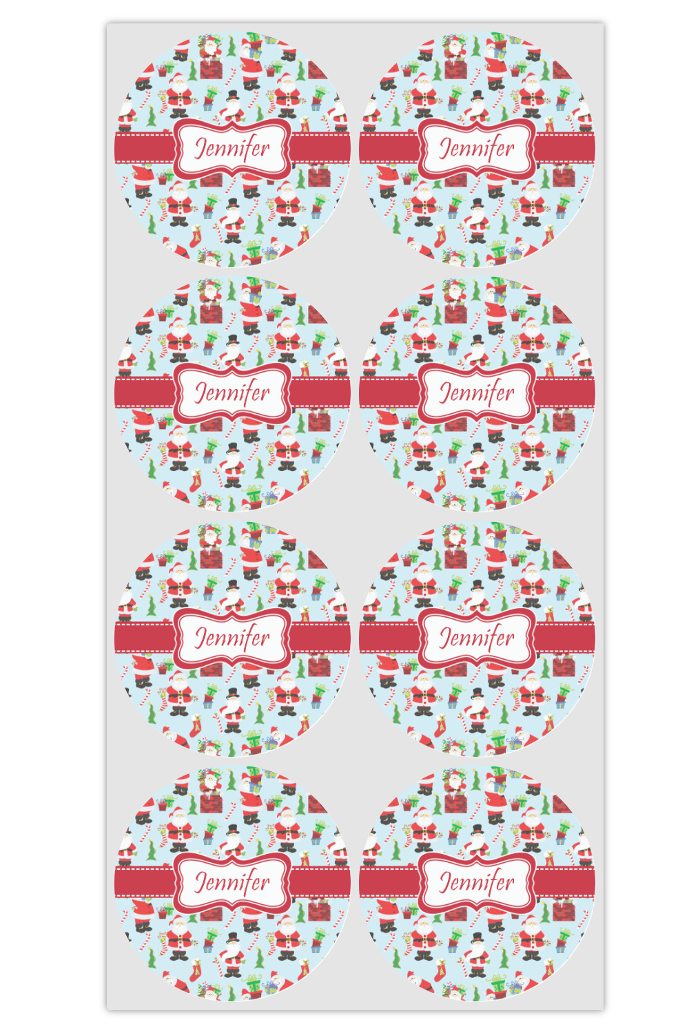 Believe in Santa Claus? Whether you do or not, this design is absolutely adorable with the background that has a cheerful Santa Claus all decked in his red and white, climbing down a chimney to leave presents upon presents and endless candy canes under your Christmas tree. The ribbon and label are red, and the label is the perfect place to put your name or text for personalization.