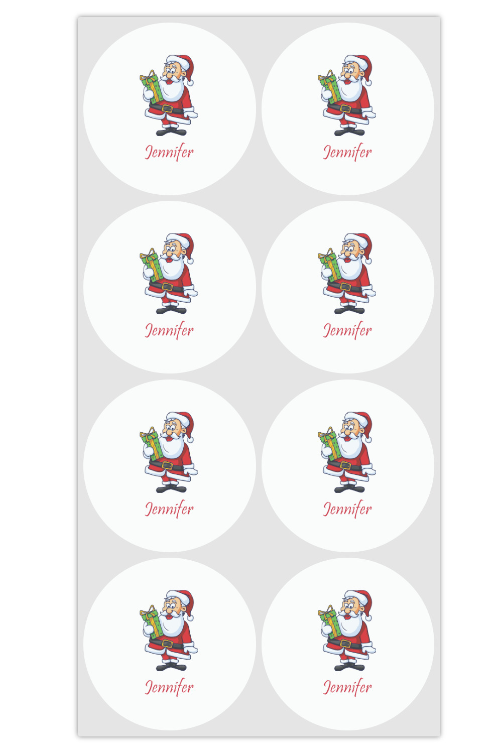 Believe in Santa Claus? Whether you do or not, this design is absolutely adorable with the background that has a cheerful Santa Claus all decked in his red and white, climbing down a chimney to leave presents upon presents and endless candy canes under your Christmas tree. The ribbon and label are red, and the label is the perfect place to put your name or text for personalization.