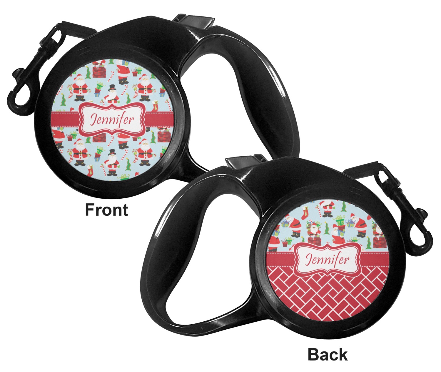 The leash's plastic handle is accommodating of your grip and displays your customization on both sides. The dog leash also features the traditional bolt snap clip, for easy fastening to your dog's collar. The leash and leash handle themselves are both black in color.