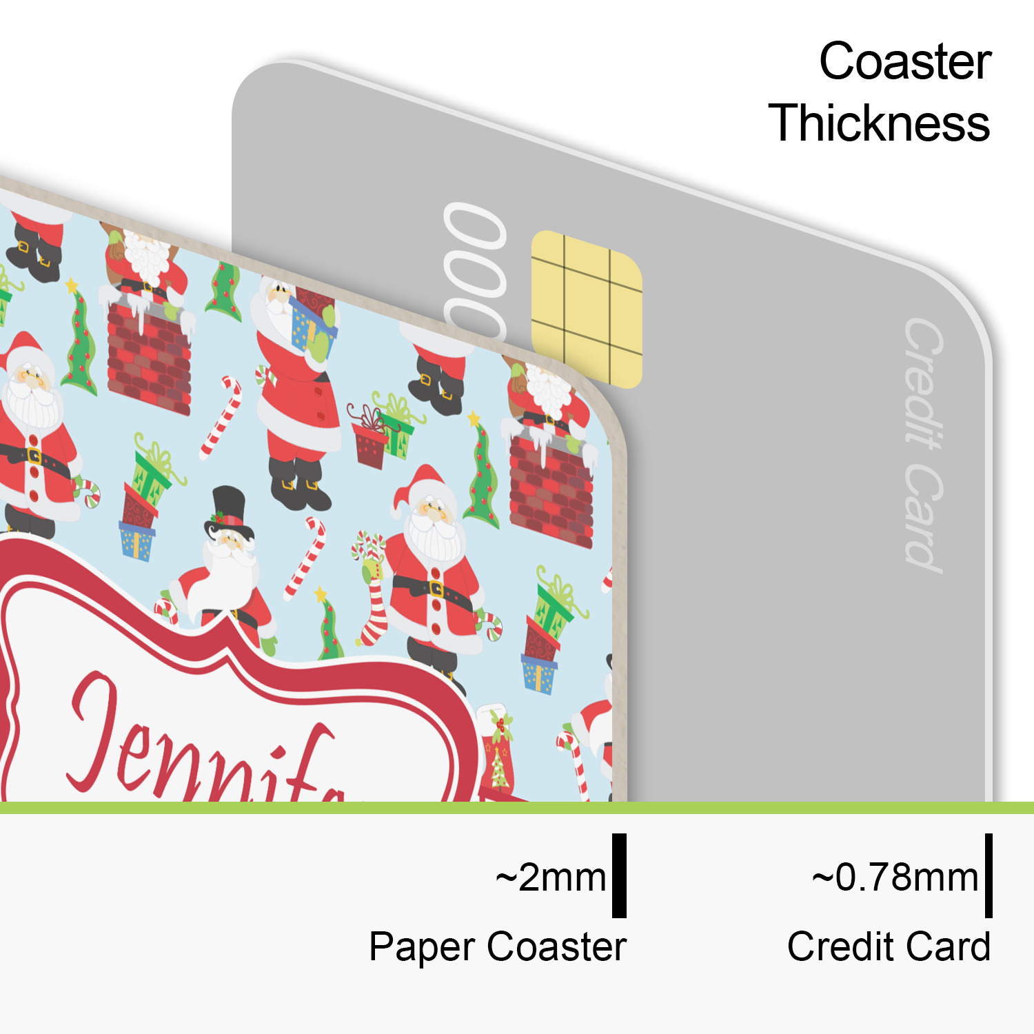 These coasters are perfectly sized for just about any drink being a 4"in square. The paper construction is a thick heavyweight 80 point pulpboard perfect for absorbing the condensation on the outside of your glass.