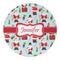 Believe in Santa Claus? Whether you do or not, this design is absolutely adorable with the background that has a cheerful Santa Claus all decked in his red and white, climbing down a chimney to leave presents upon presents and endless candy canes under your Christmas tree. The ribbon and label are red, and the label is the perfect place to put your name or text for personalization.