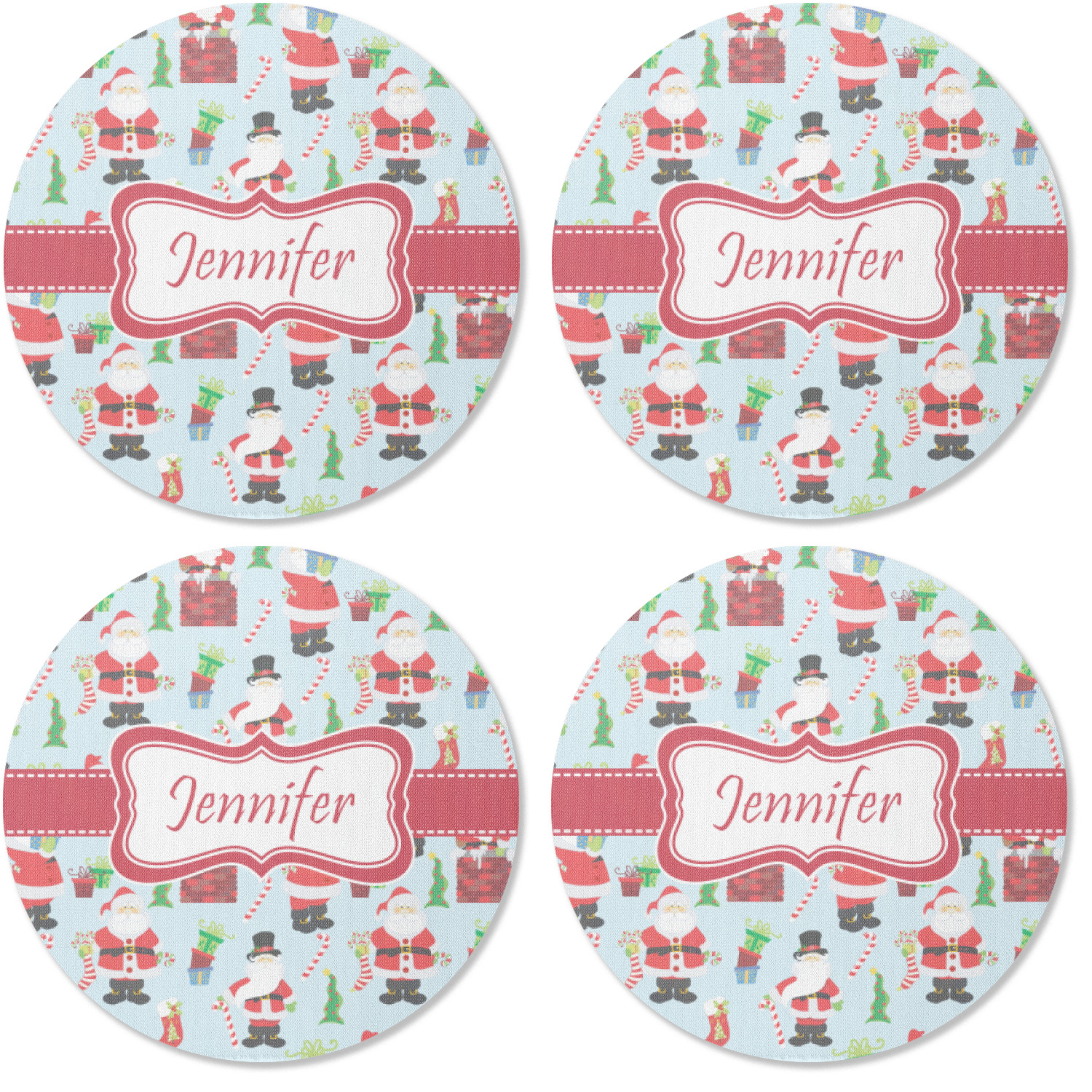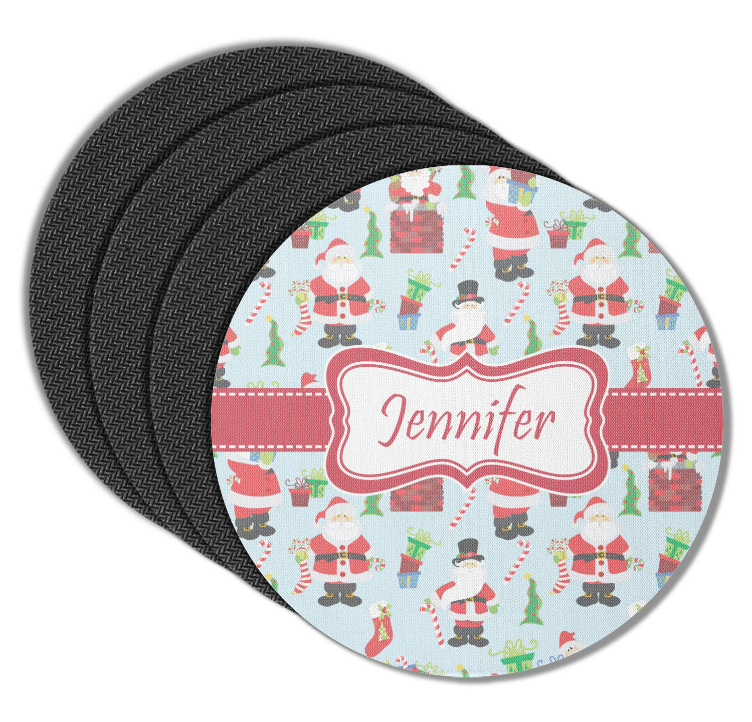 These drink coasters have a smooth, polyester top and a textured, rubber backing on its bottom. The non-slip rubber backing underneath works to keep any spills at bay. At 4 by 4 by 0.25 inches thick, these custom coasters are a suitable size for most drinkware. Your personalization is displayed atop the face of the cup coaster. We sell these rubber coasters in two different shapes: square and round. You can buy each shape as singulars or as a set of 4.
