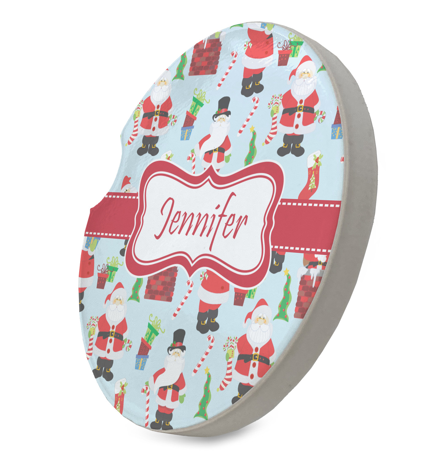 These sandstone coasters are round, robust, and feature a smoothed glossy side to exhibit your customized design. With a 2.5 inch diameter, these stone coasters will fit snugly inside most cup holders. This model also features a semi-circle shaped divot that allows for easy removal, despite the tight fit. You can purchase these car cup holder coasters in a pair, or singularly, depending on your needs.