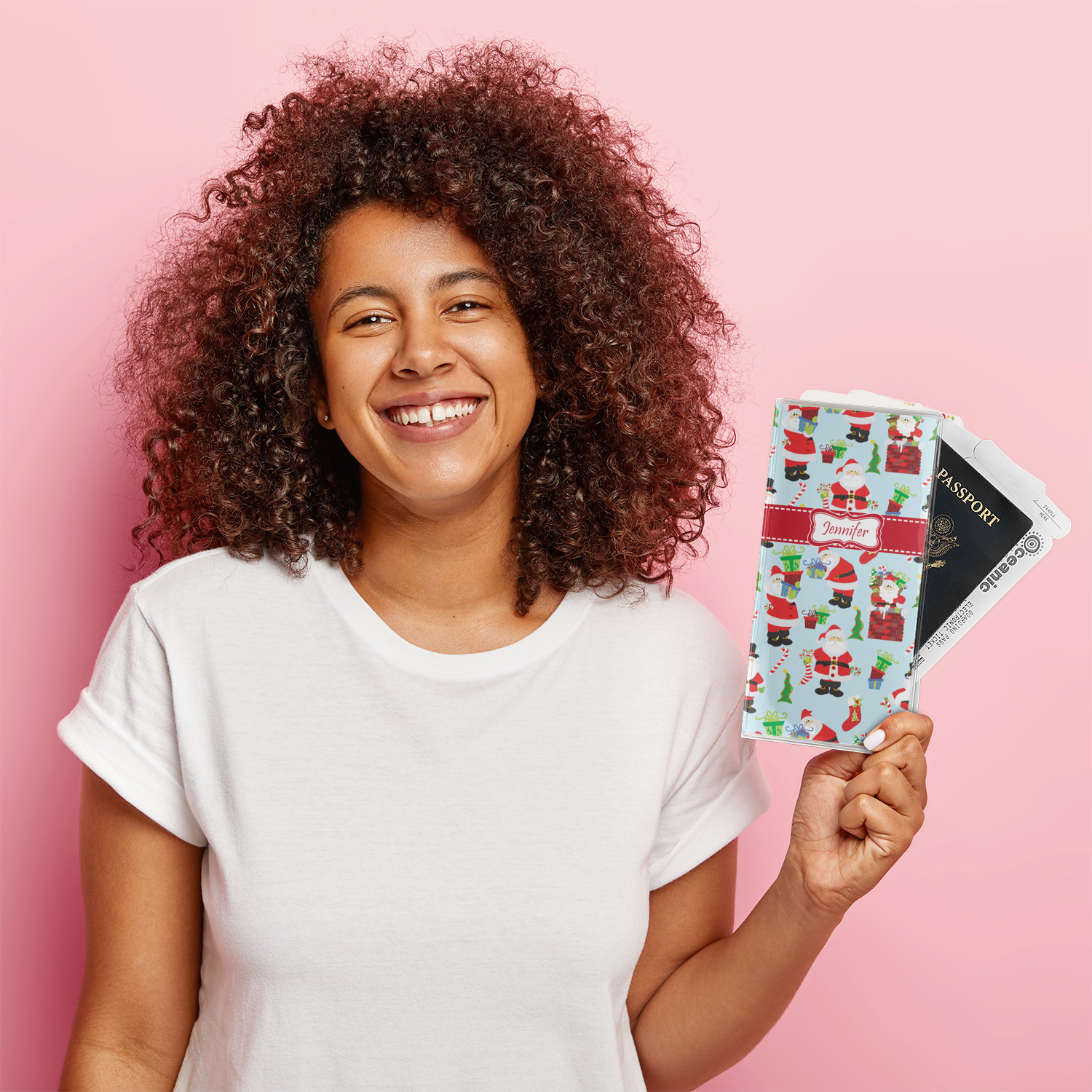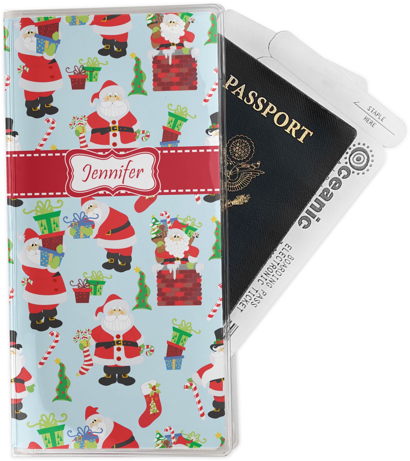 This document holder is really sturdy and has your personalized design inserted right behind all of your nifty pockets, so you can see it on the front and back covers. There are two large pockets and two shorter pockets inside. The larger pockets are tall enough to keep your boarding pass nice and straight. The smaller pockets (on top of the large pockets) are large enough to fit your passport, credit card, or ID.