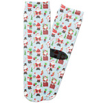 Believe in Santa Claus? Whether you do or not, this design is absolutely adorable with the background that has a cheerful Santa Claus all decked in his red and white, climbing down a chimney to leave presents upon presents and endless candy canes under your Christmas tree. The ribbon and label are red, and the label is the perfect place to put your name or text for personalization.