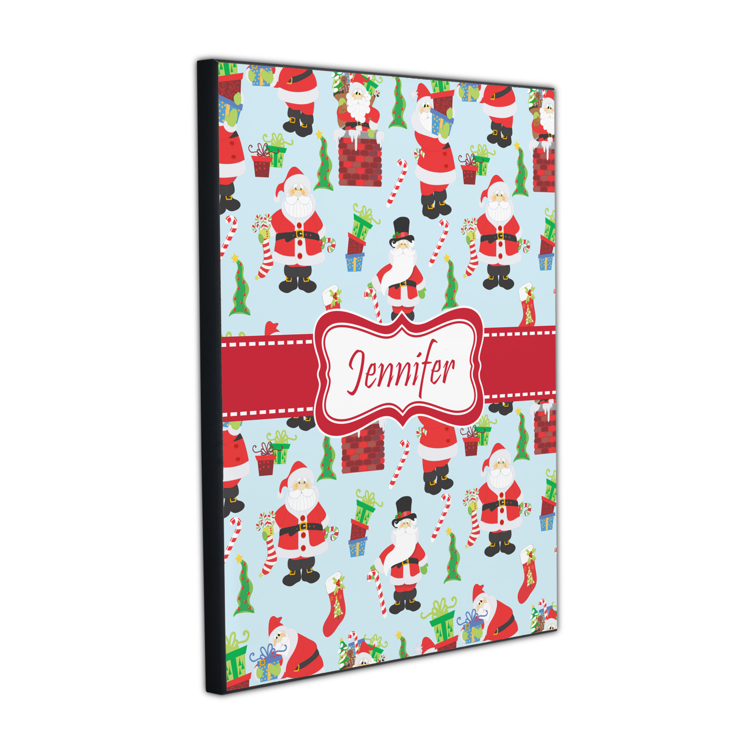 Believe in Santa Claus? Whether you do or not, this design is absolutely adorable with the background that has a cheerful Santa Claus all decked in his red and white, climbing down a chimney to leave presents upon presents and endless candy canes under your Christmas tree. The ribbon and label are red, and the label is the perfect place to put your name or text for personalization.