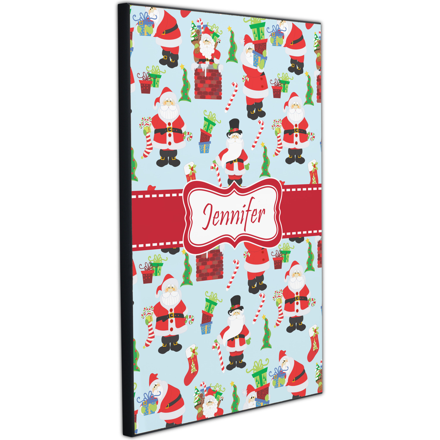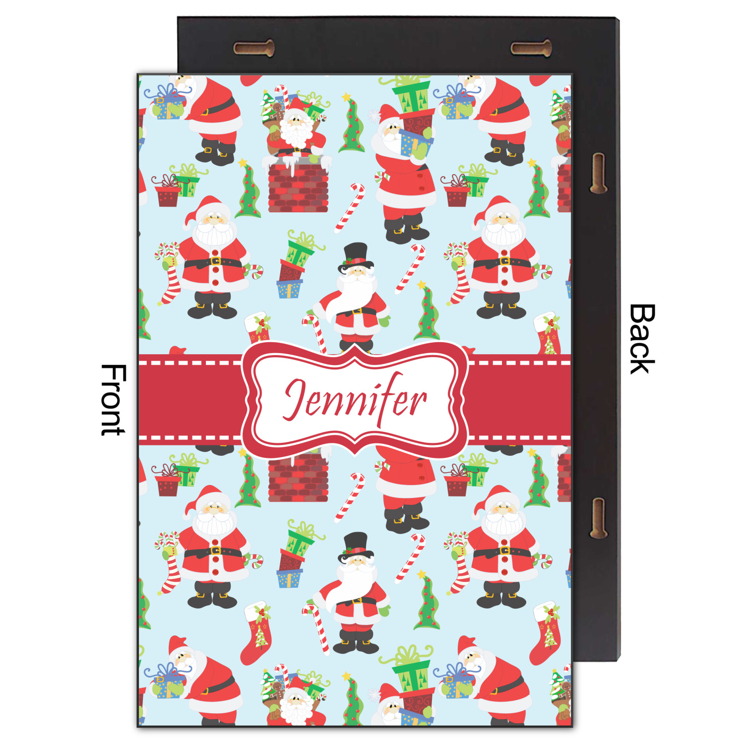 Believe in Santa Claus? Whether you do or not, this design is absolutely adorable with the background that has a cheerful Santa Claus all decked in his red and white, climbing down a chimney to leave presents upon presents and endless candy canes under your Christmas tree. The ribbon and label are red, and the label is the perfect place to put your name or text for personalization.