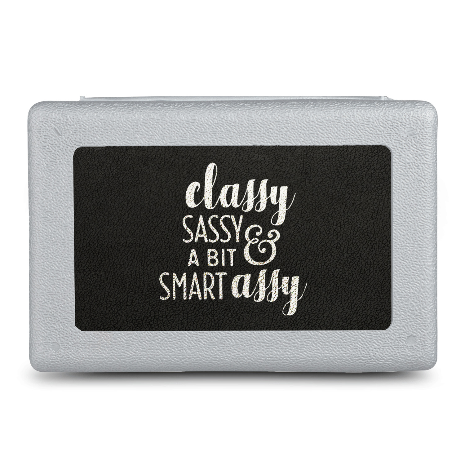 In a tri-fold hard shell case which measures 6" wide, 4" deep and 2" tall, this kit is the perfect size to keep in a desk, garage drawer, or anywhere else in the house. The snap closure keeps it securely closed to ensure the tools do not fall out. With the black faux leather on the outside engraved with your choice of personalization it will be easier to ensure it stays yours by being customized just for you!