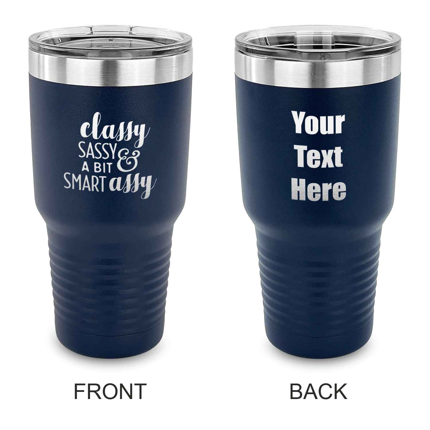 With the 5 colors - Black, Navy, Red, Pink and Coral, you are sure to find a cup to fit your personality. You can chose to engrave on the front or the front and back of the cup. Use our design studio to design your own cup and we laser engrave it for you.