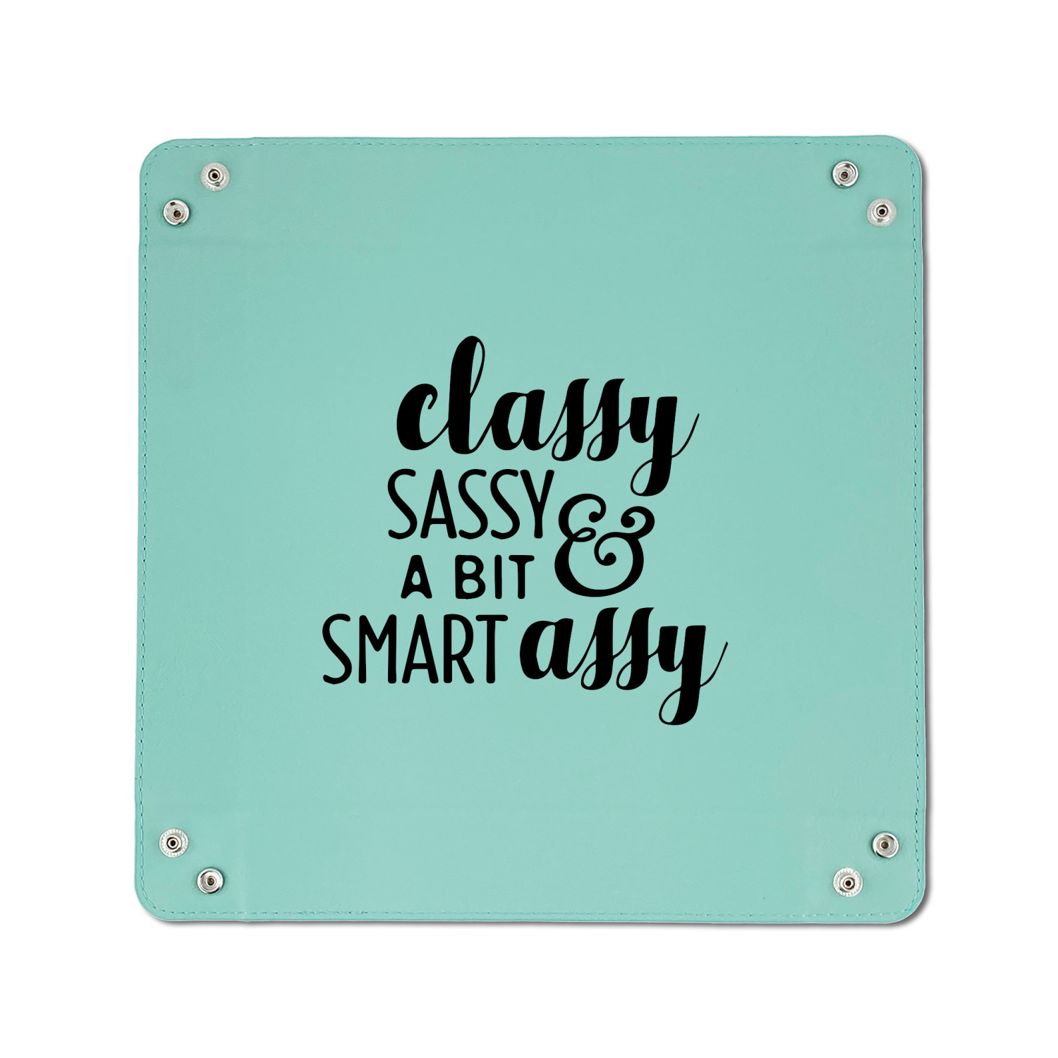 The leatherette wraps the hard board base and sides with flexible hinges to fold the sides up. The corners are secured using silver snaps. The 6in x 6 in tray measures approximately 9.5in x 9.5in when laid flat. The 9in x 9in tray measures approximately 13in x 13in when laid flat.