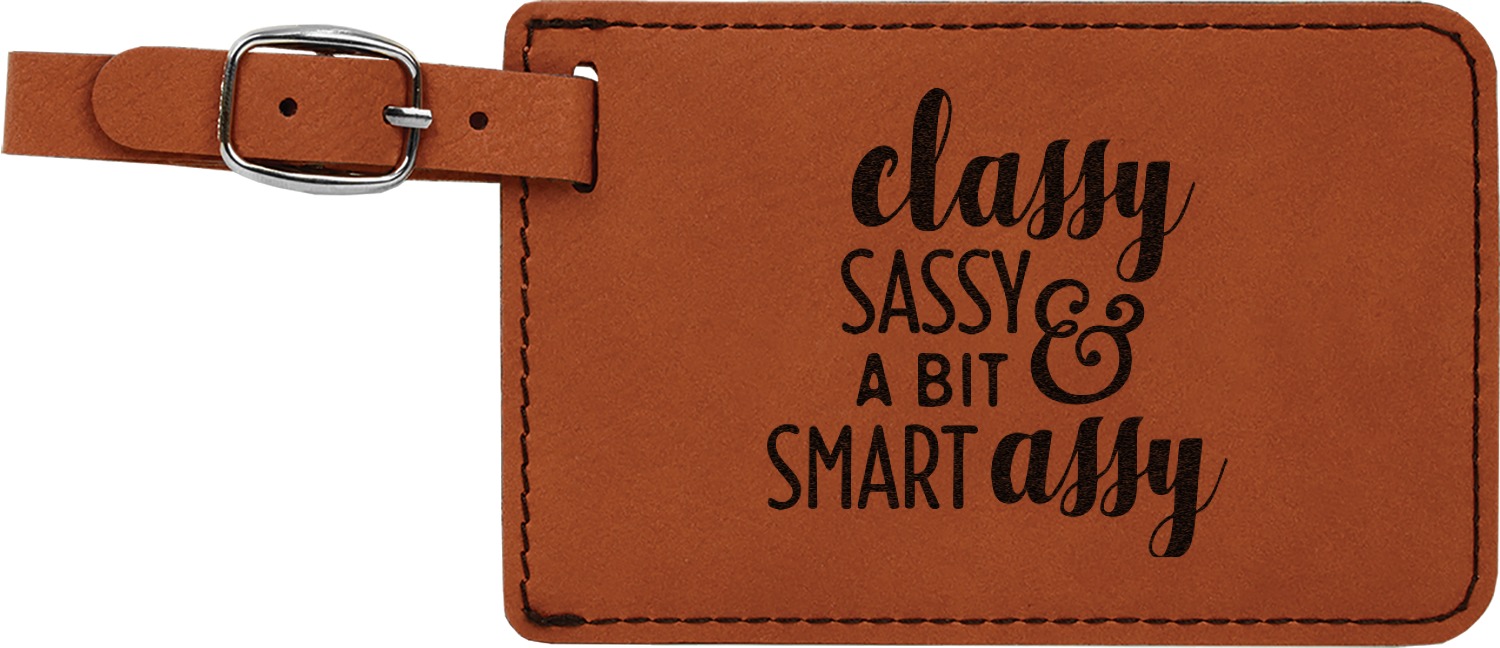This luggage tag will surely be able to get you started in having all the right tools for traveling. It is made of a beautiful leatherette material that is a nice shade of cognac brown. The front of the tag is where your design goes. The sturdy black stitching gives your design an extra pop and gives the tag extra durability. The back of the tag has a clear vinyl window where you can slip in your address card. The tag comes with a great little buckle strap that you can easily use to clip to your suitcase. The tag itself measures at approximately 5.5"W x 4.25"H.