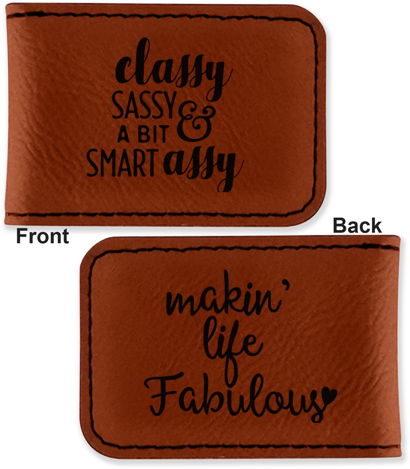 Your money clip will be laser engraved so that the design you choose will come out black. Find a fun graphic, monogram, or font to use to personalize your money clip either on just the front or the front and the back.