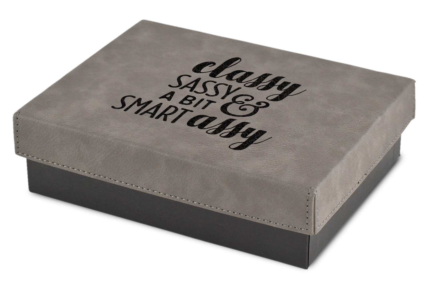 These gift boxes are available in 3 different sizes to accommodate various sized gifts. Available in gray as a neutral color for any occasion as well as to showcase your design boldly. Engraved with a laser this high quality paper board and faux leather gift box is unique and makes any gift stand out.