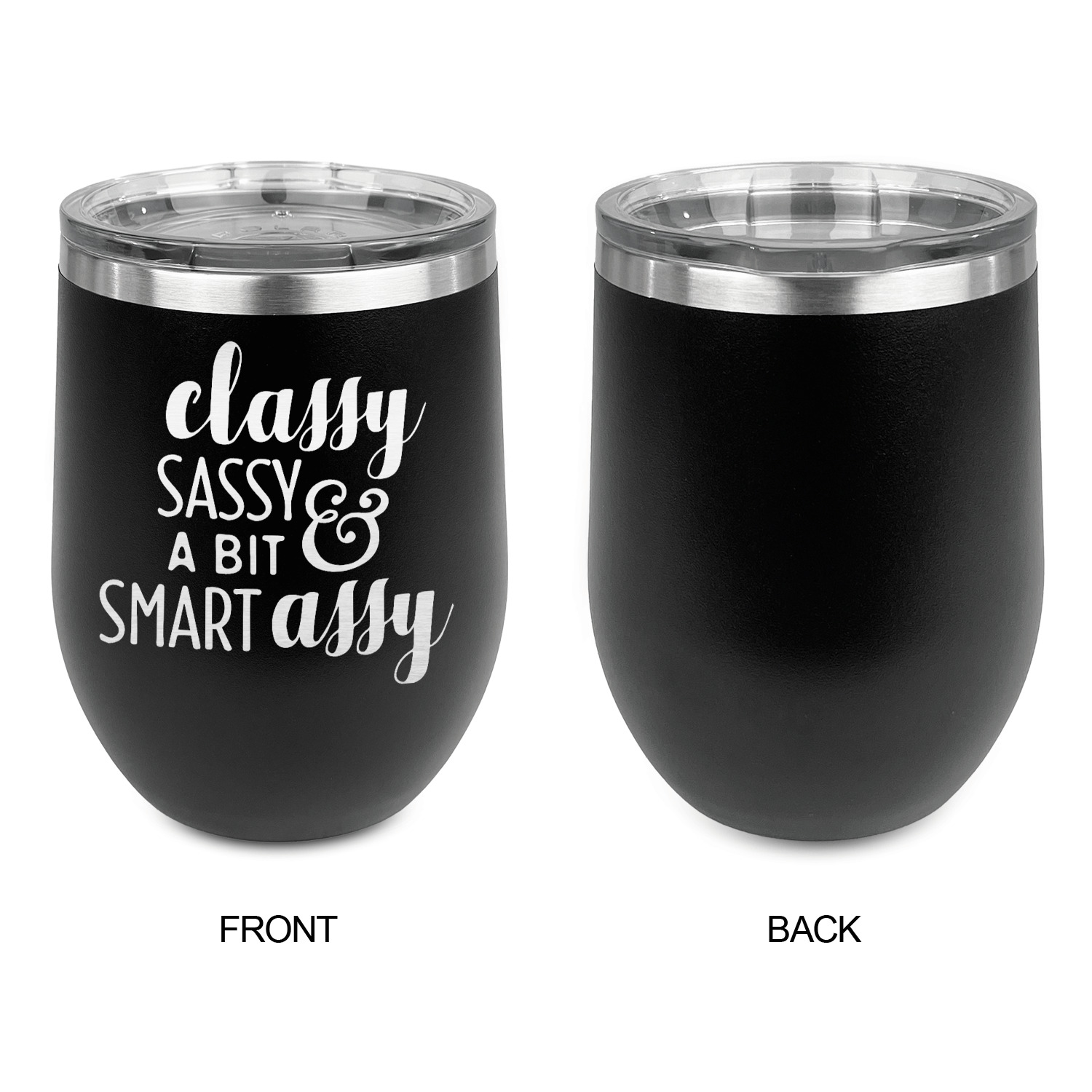 Design your wine tumbler with a cool graphic or quote. Even put your initials or monogram! These cups are laser engraved, which looks extra sharp on the metal tumbler.