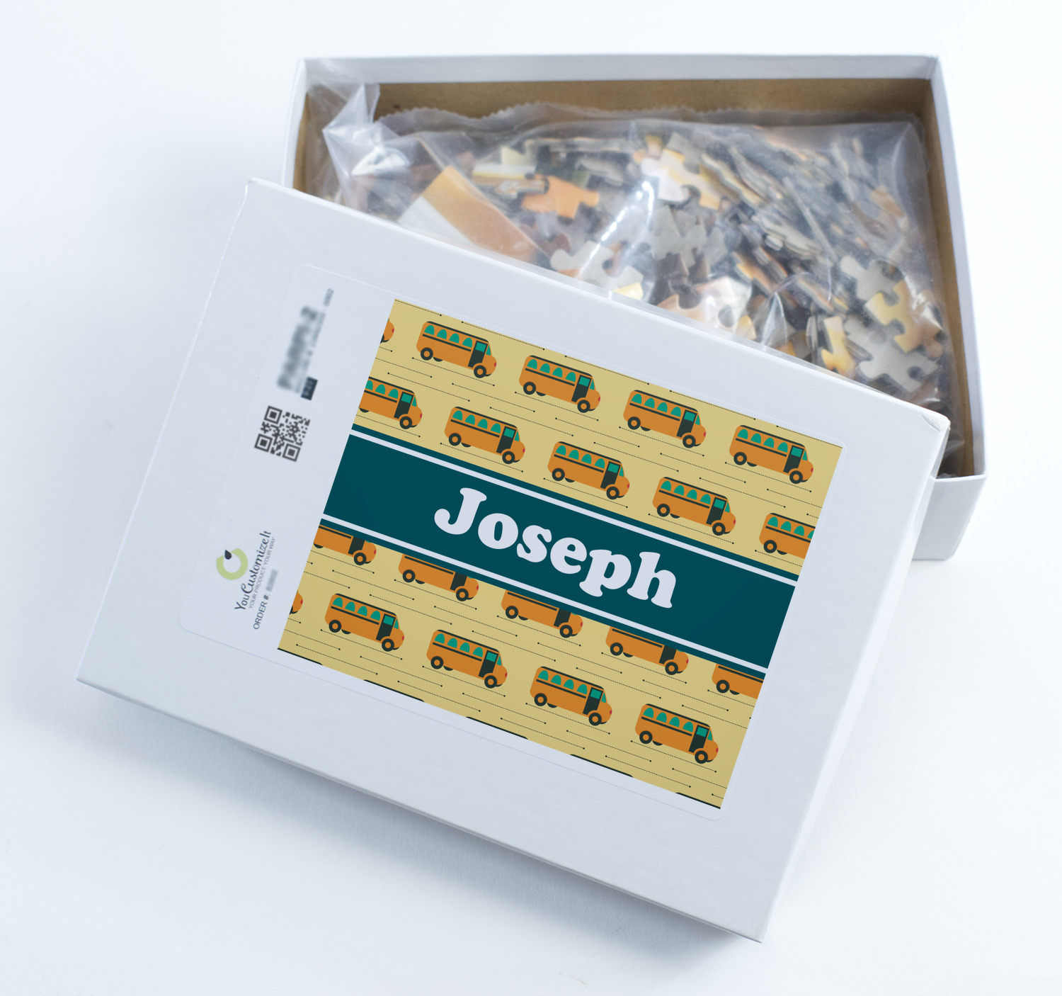 You can also upload your logo or art that you or your kids drew. To create more challenging jigsaw puzzles, you can create a pattern from with your logo or artwork. You can also add other elements such as text or personalization.