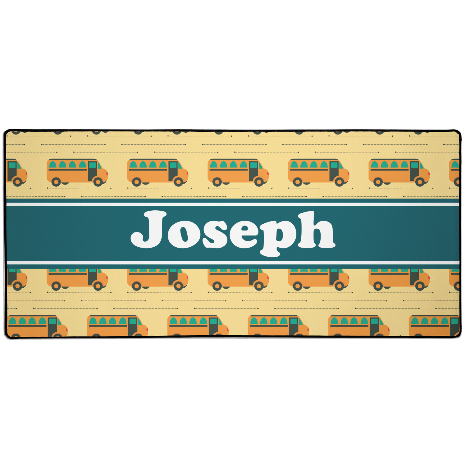 Filled with different shades of yellow, this design will be a cheery one to take to school on their first day! The school buses almost seem like they are in motion on the light yellow background. The teal ribbon is a nice complimentary color and really pops on top of the yellows.